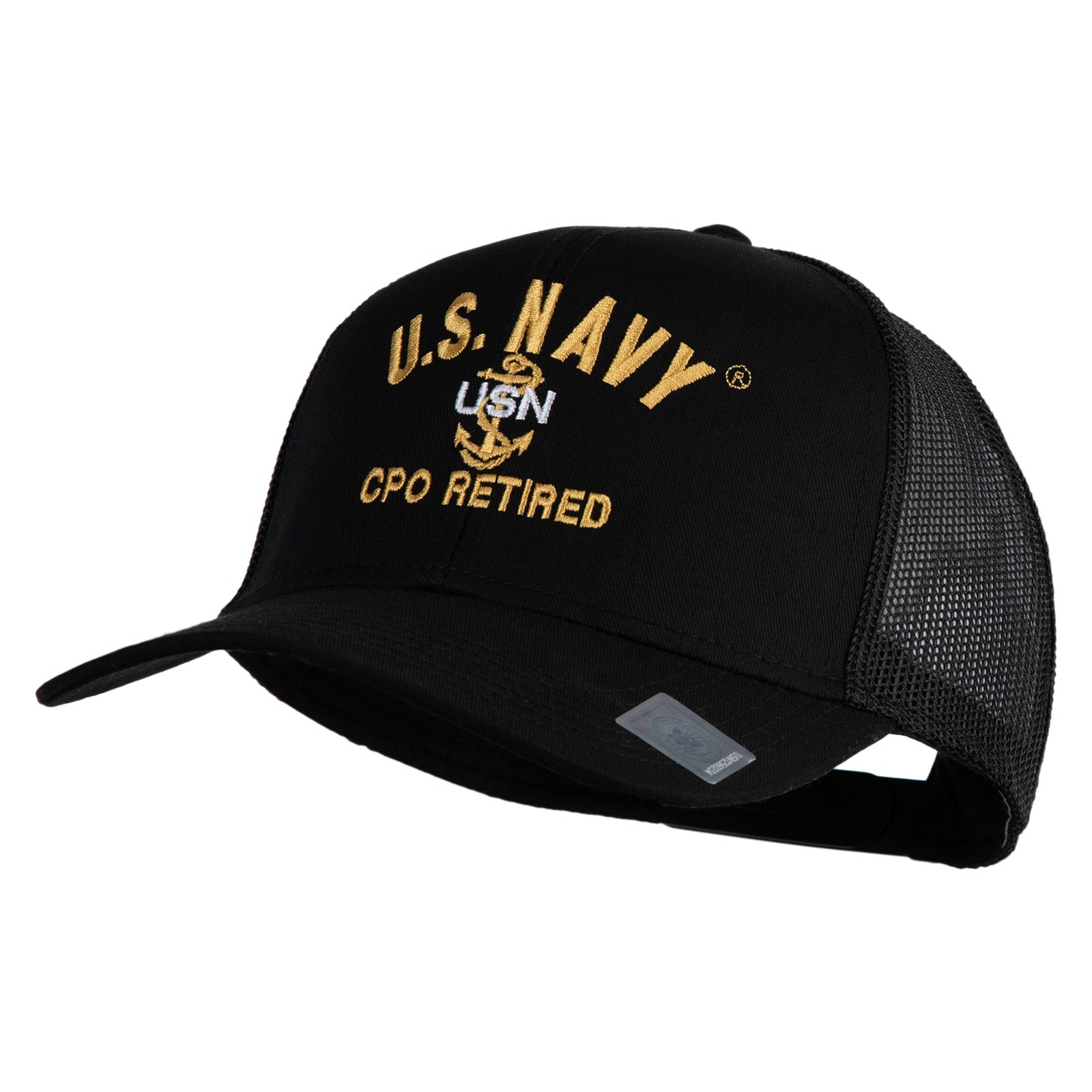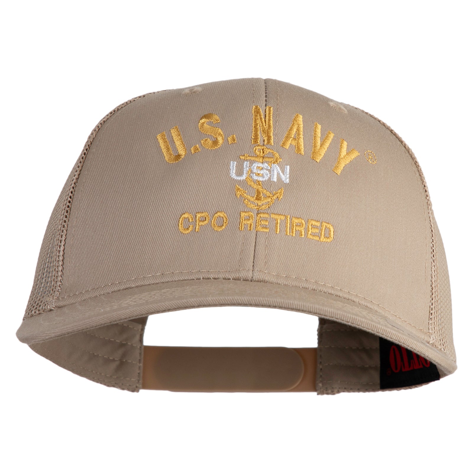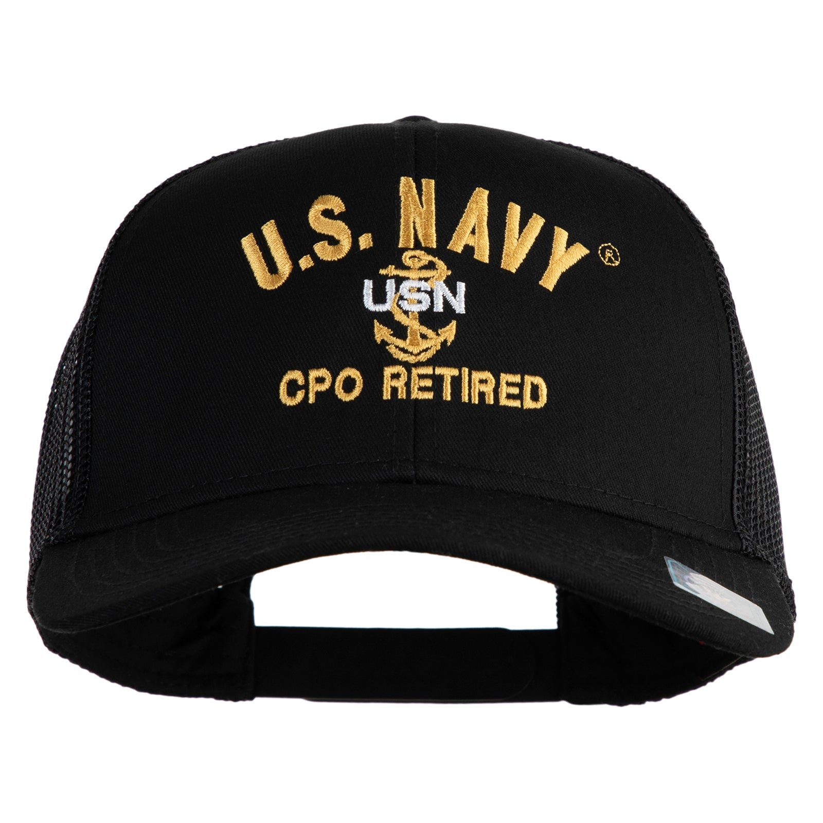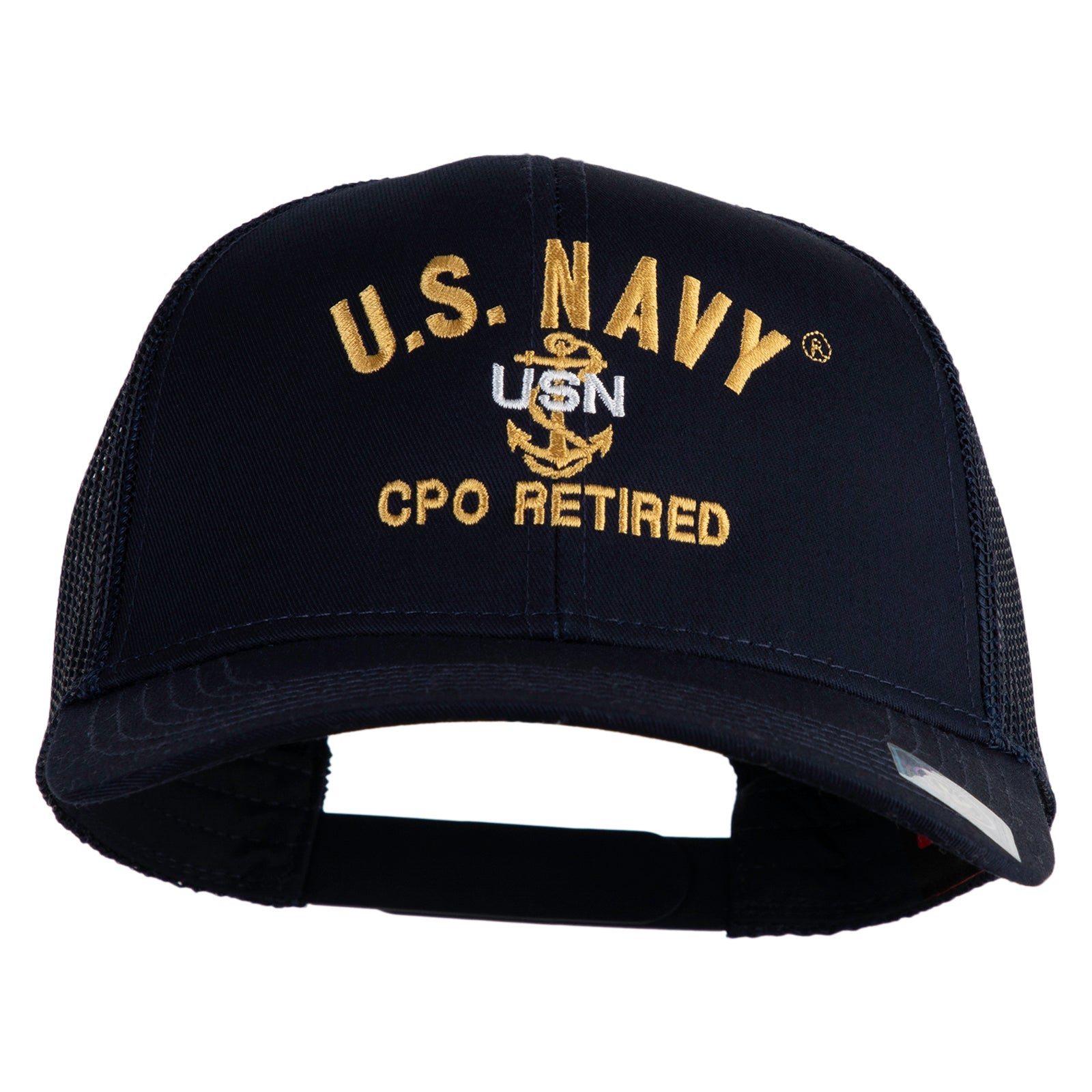 Title, US Navy CPO Retired Military Embroidered Solid Cotton Twill Mesh Prostyle Cap