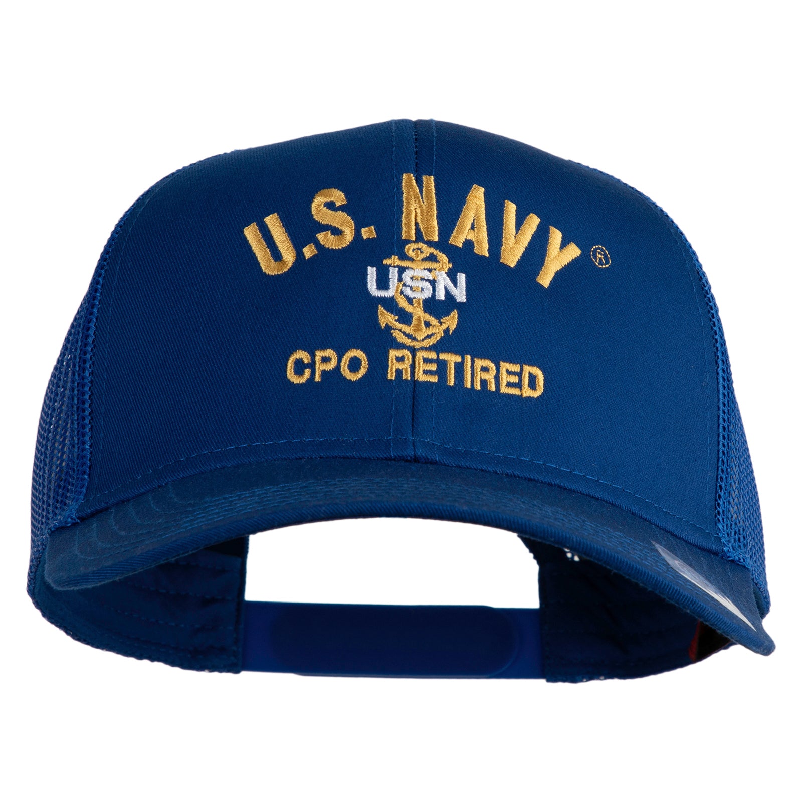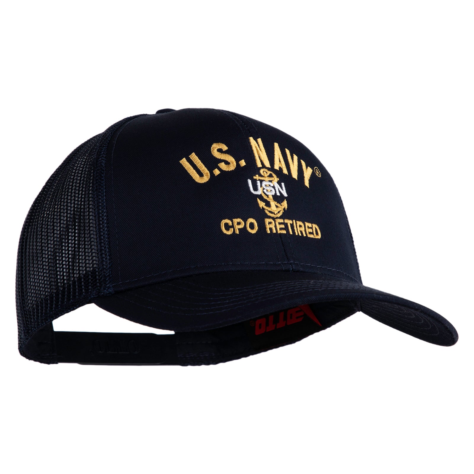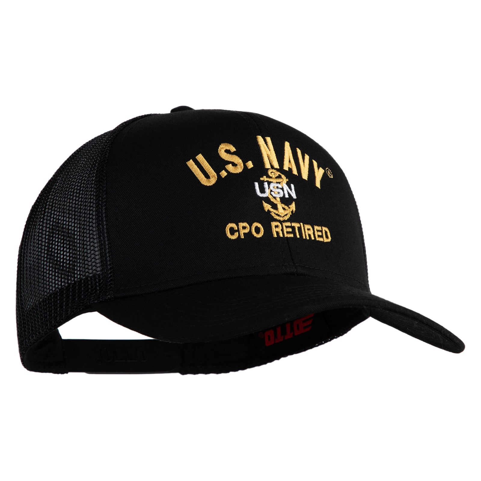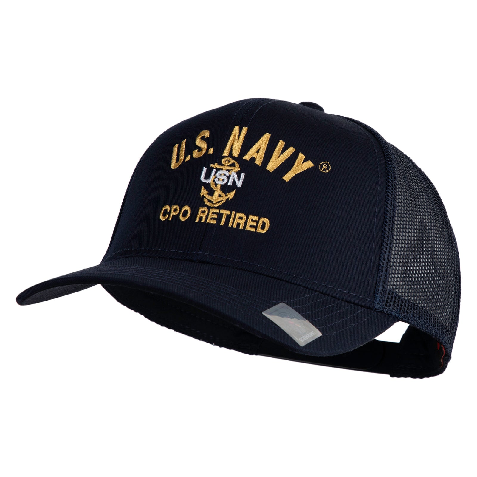 Title, US Navy CPO Retired Military Embroidered Solid Cotton Twill Mesh Prostyle Cap