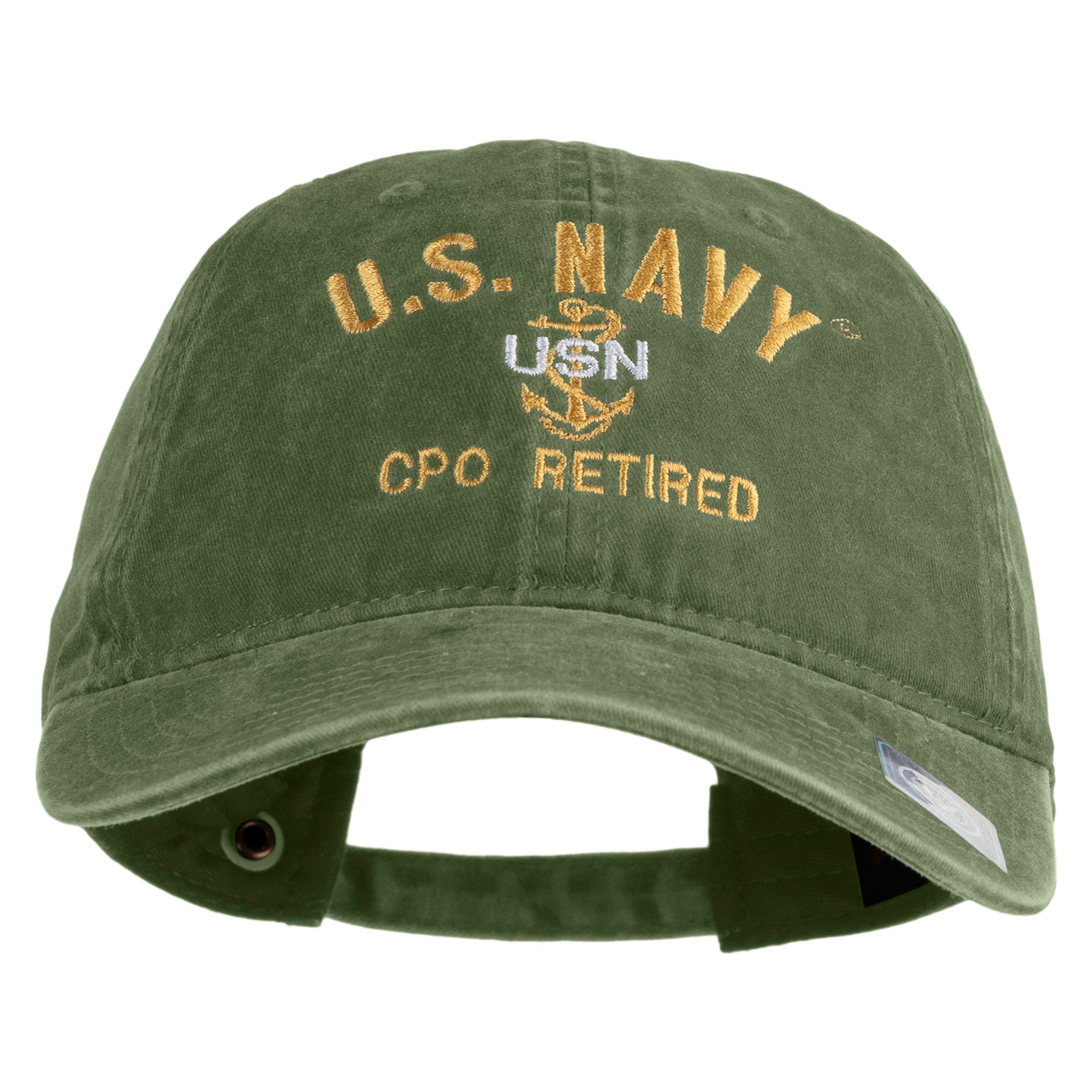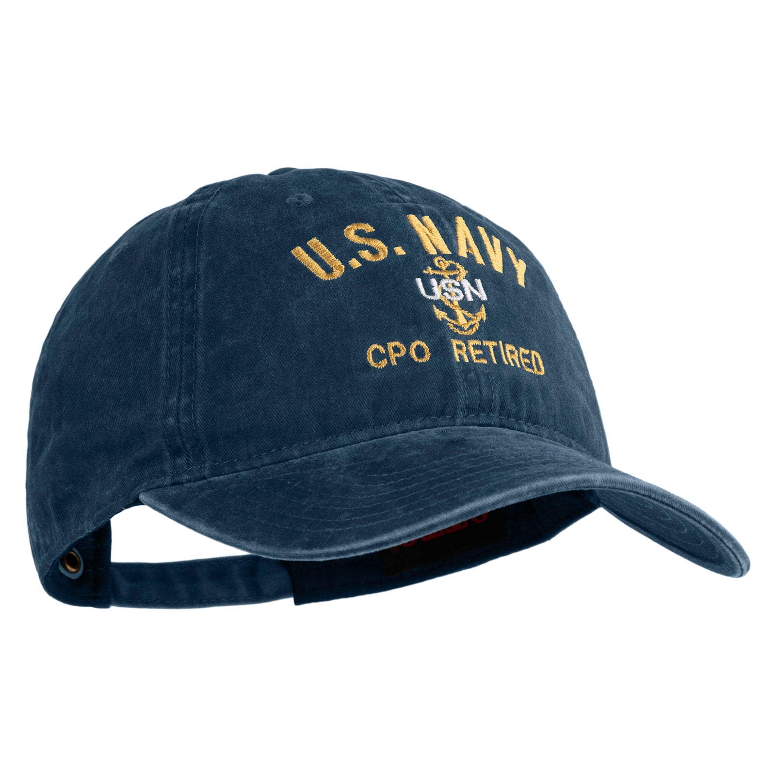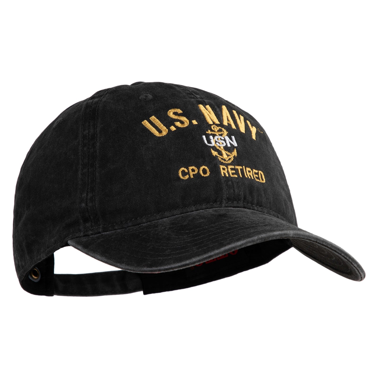 US Navy CPO Retired Military Embroidered Washed Solid Pigment Dyed Cotton Twill Brass Buckle Cap