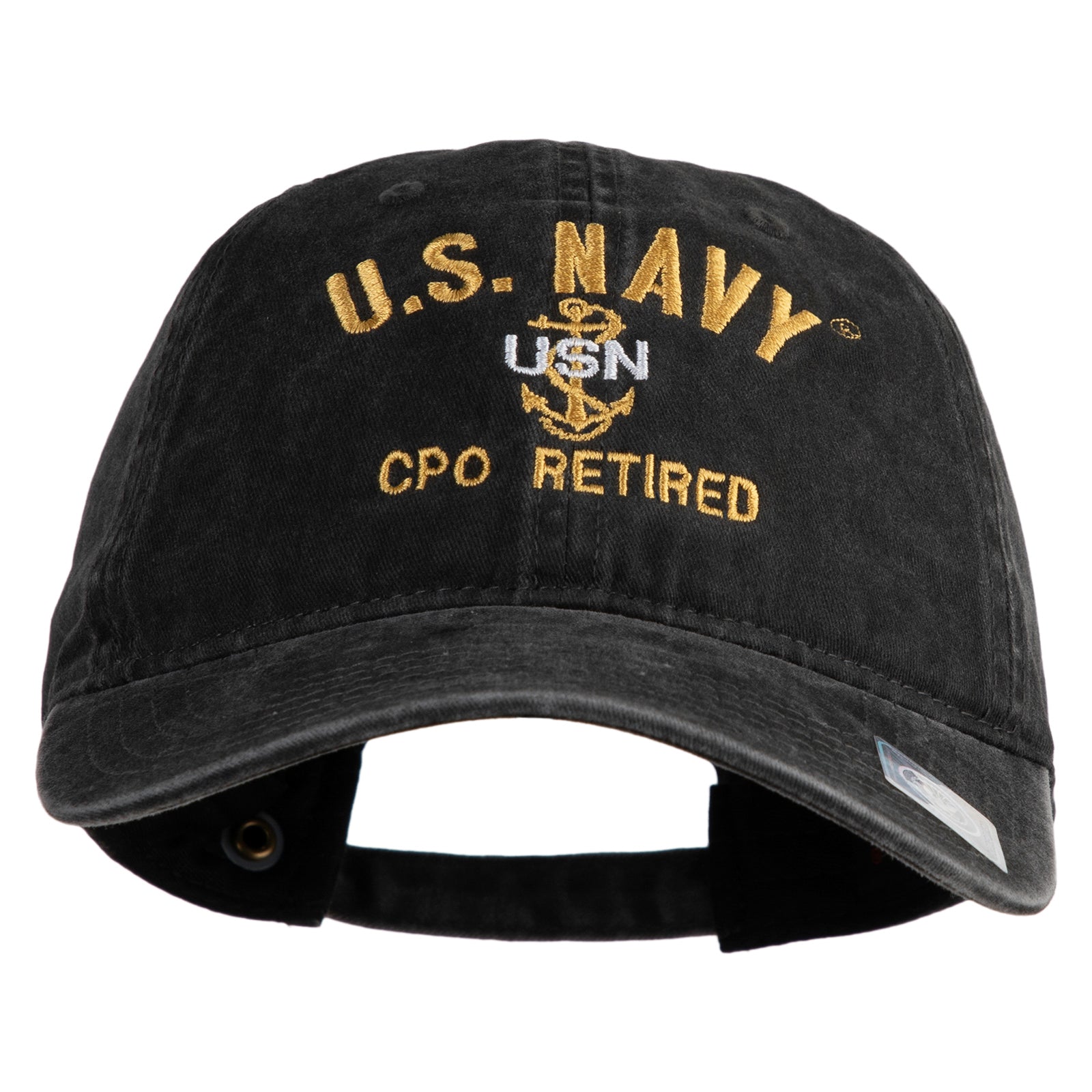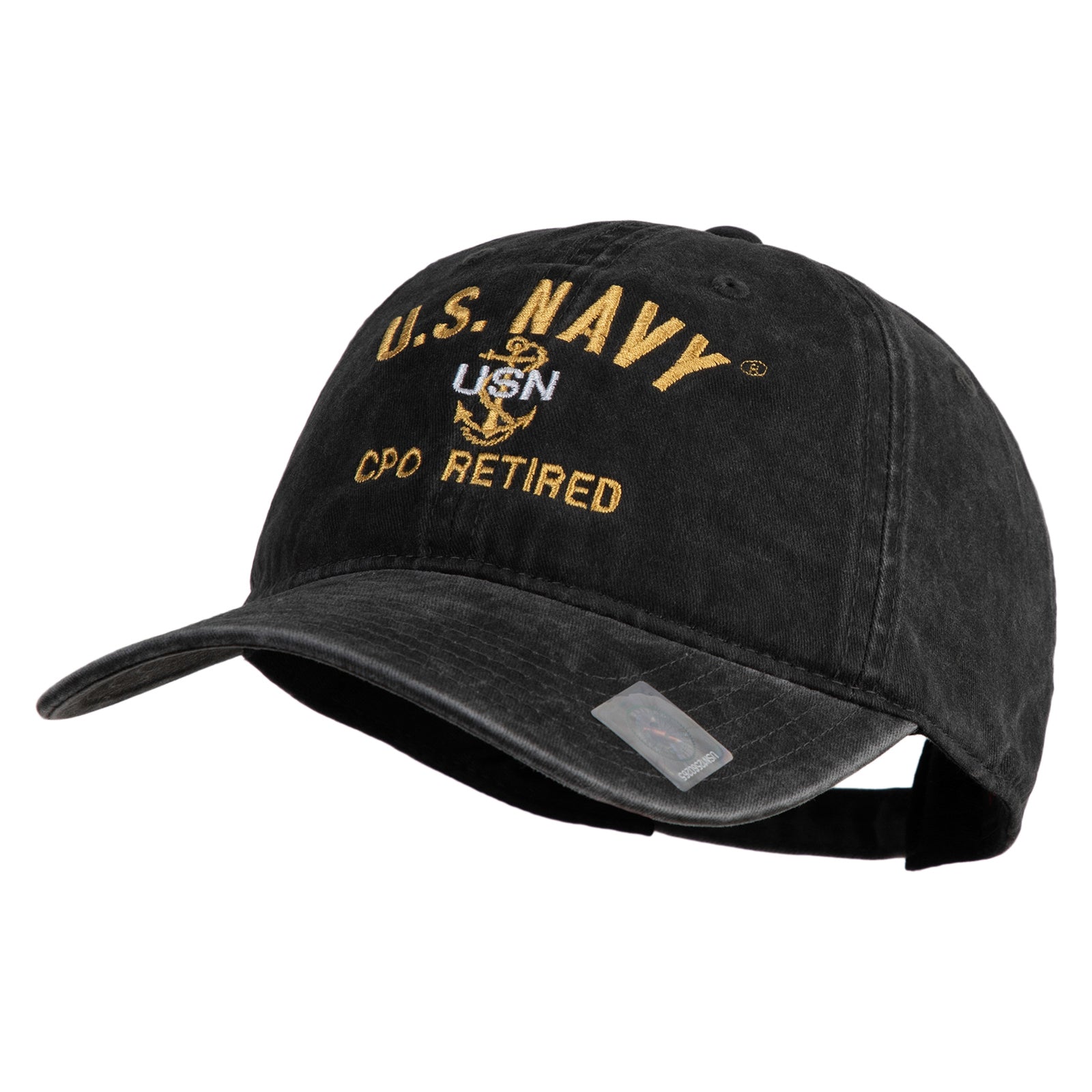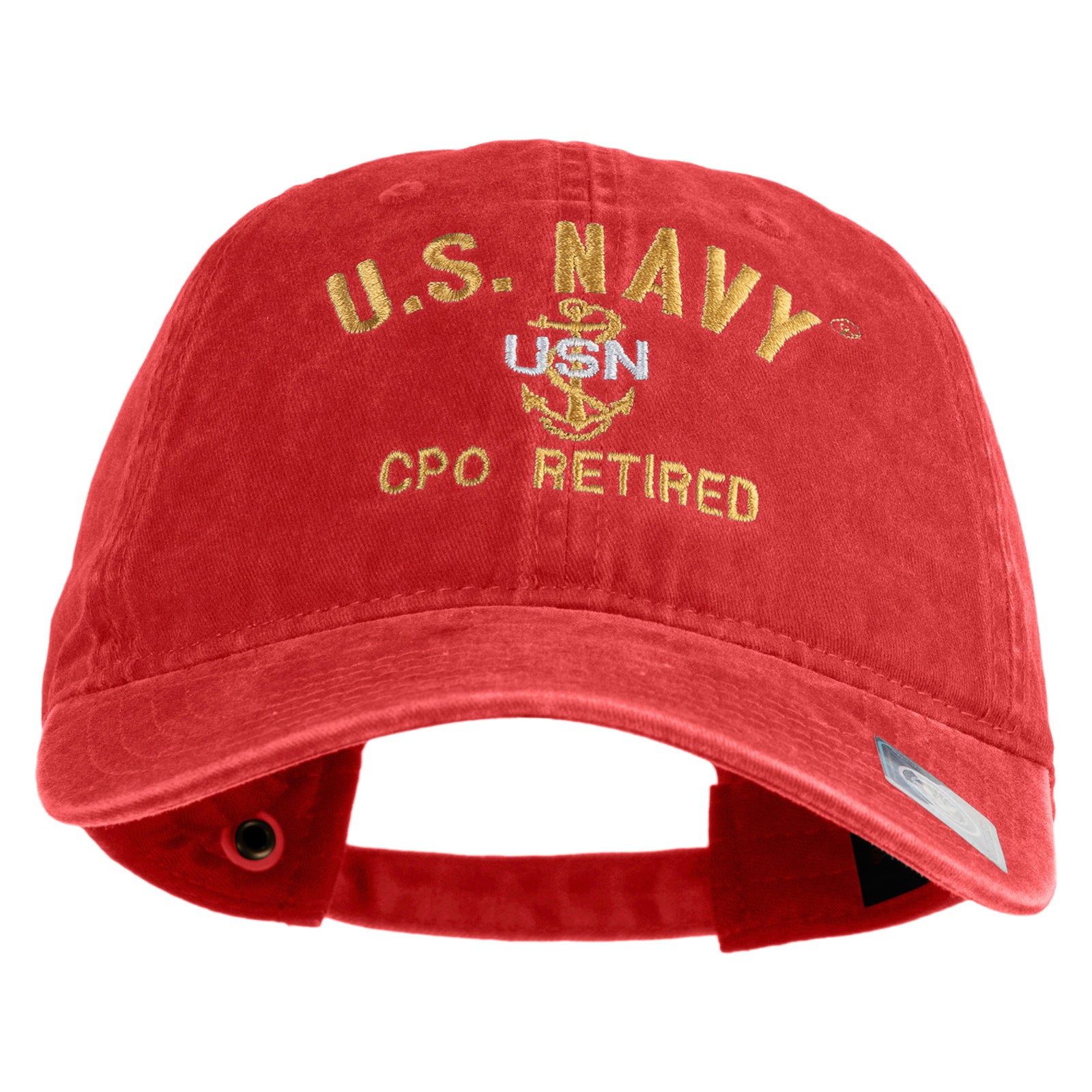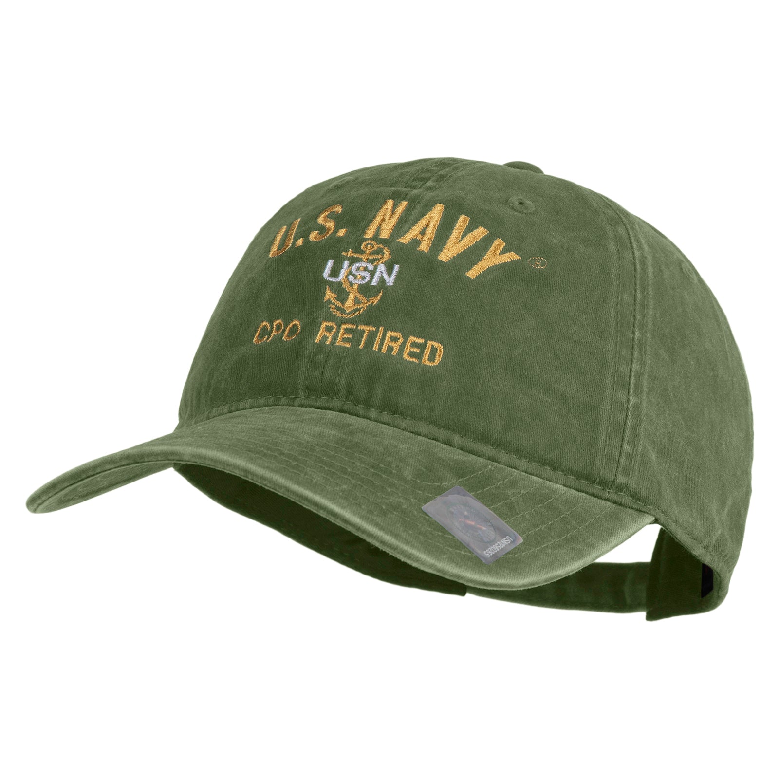 US Navy CPO Retired Military Embroidered Washed Solid Pigment Dyed Cotton Twill Brass Buckle Cap