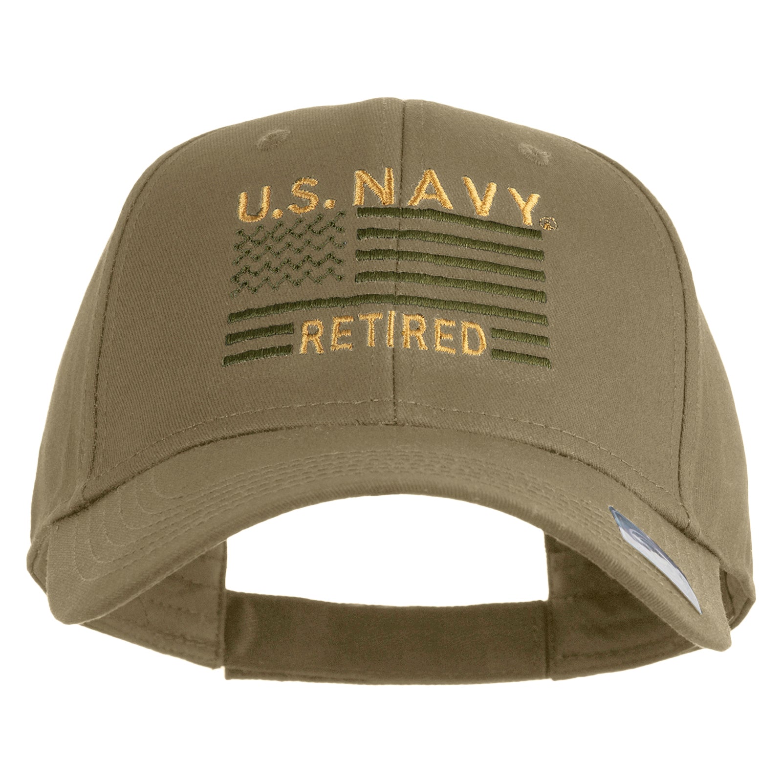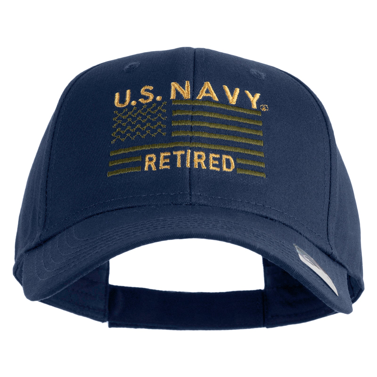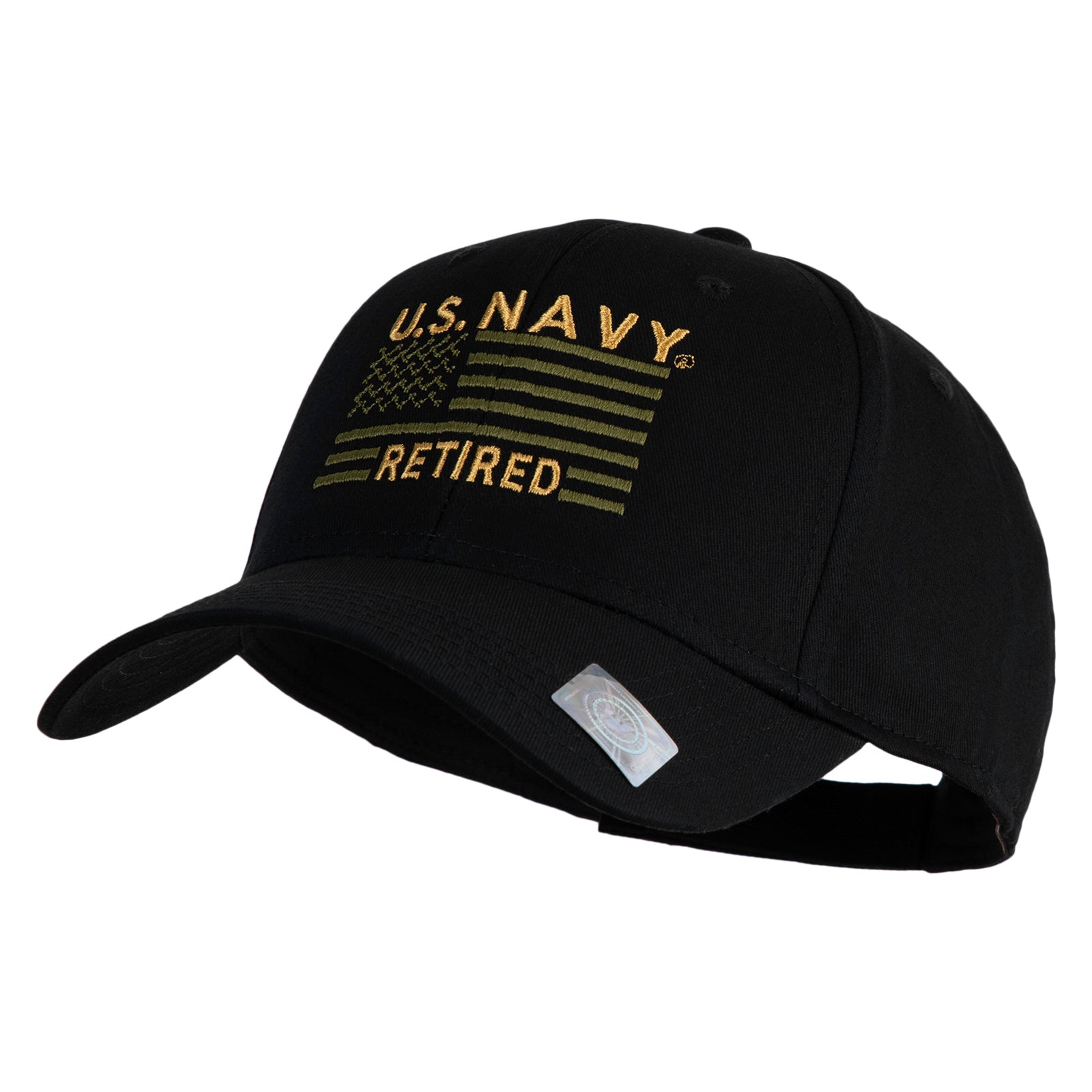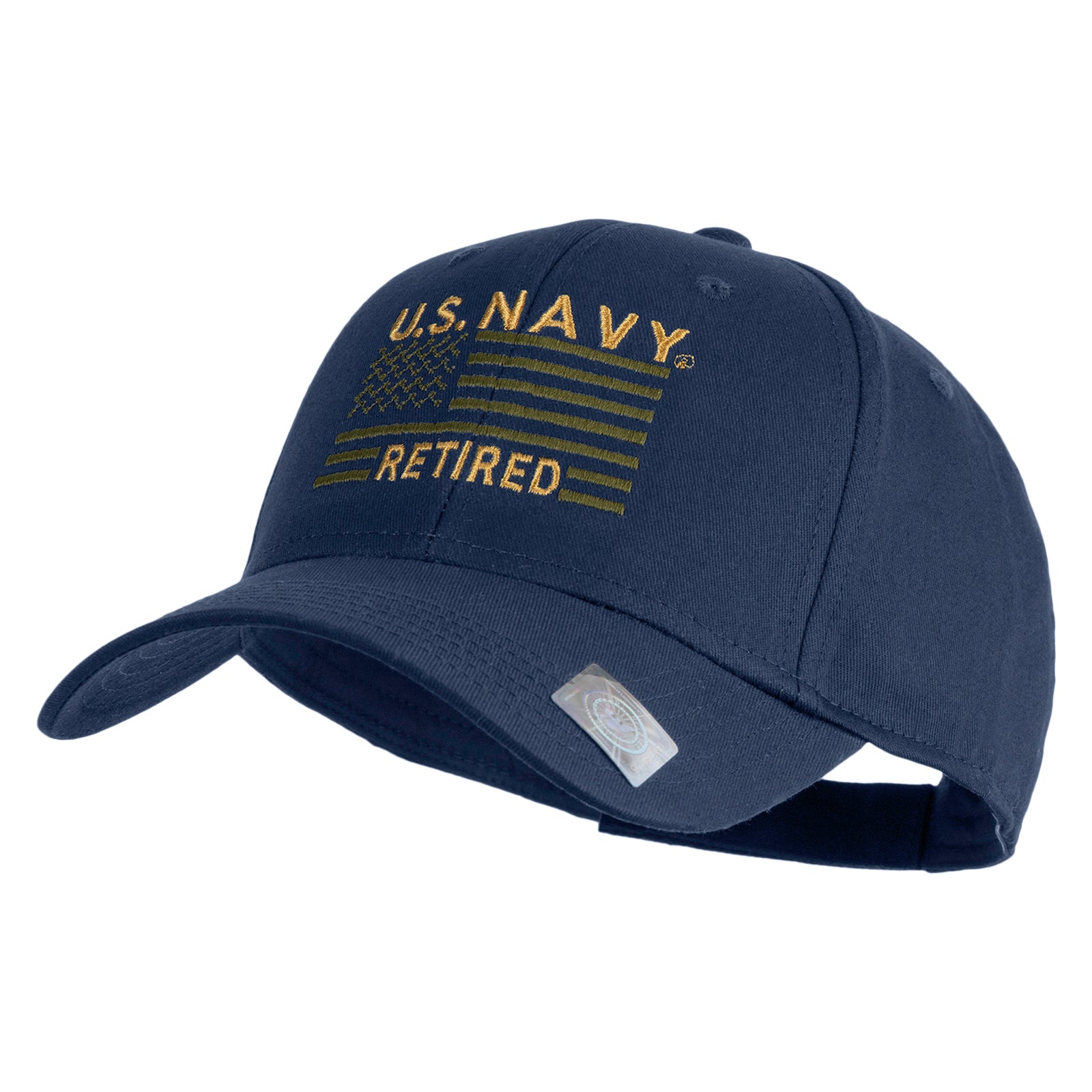 Title, US Navy Retired Flag Embroidered Solid Cotton Twill Low Profile Strap Cap