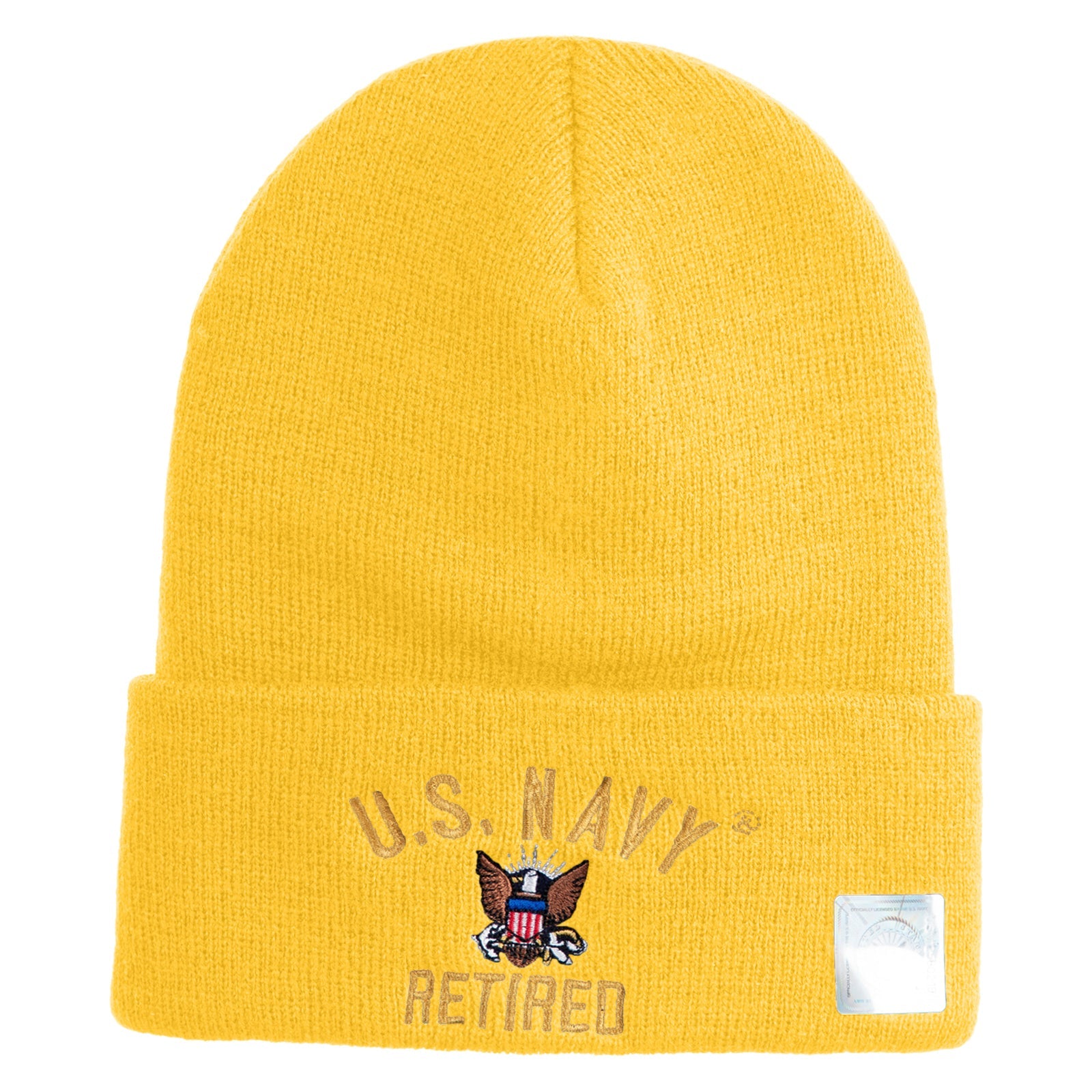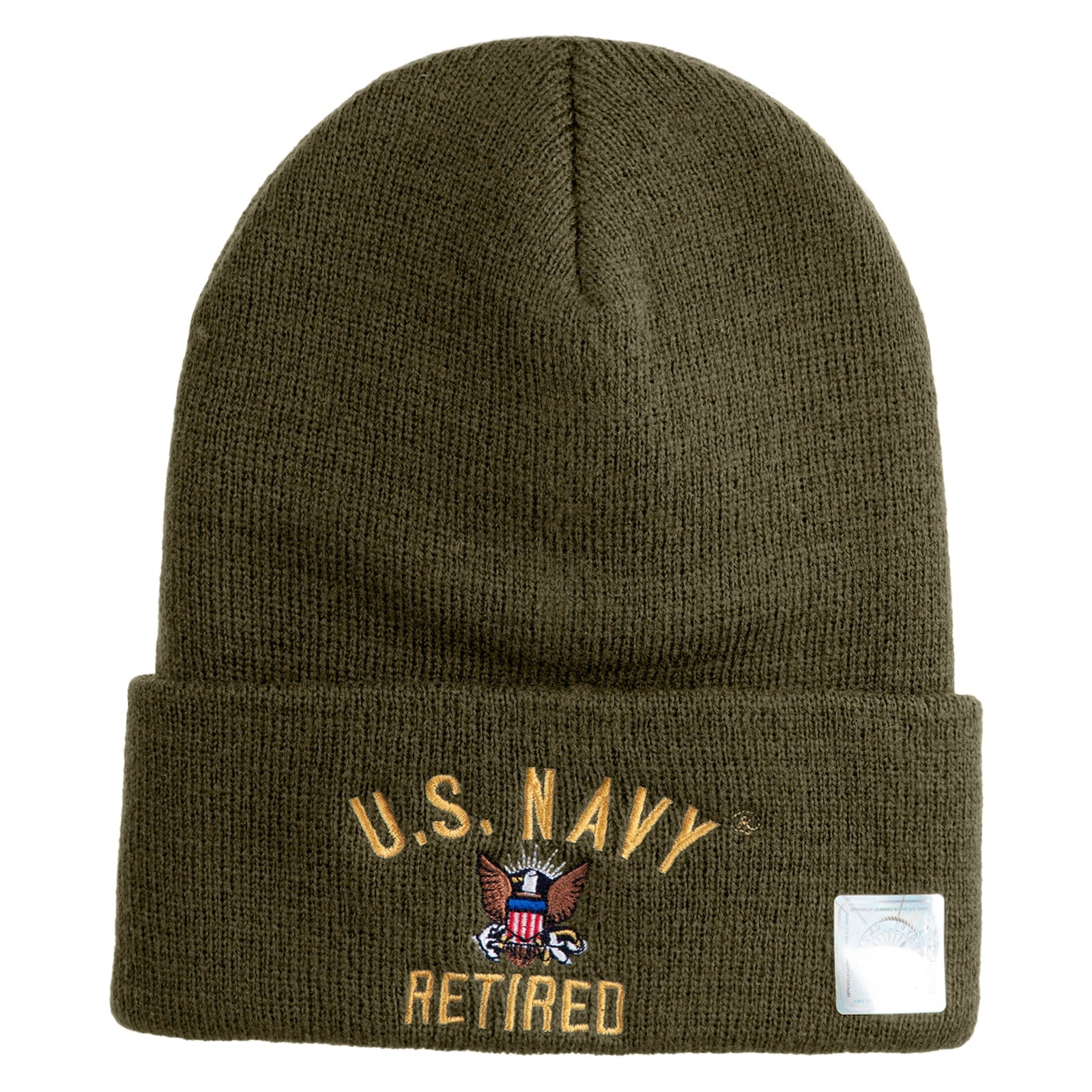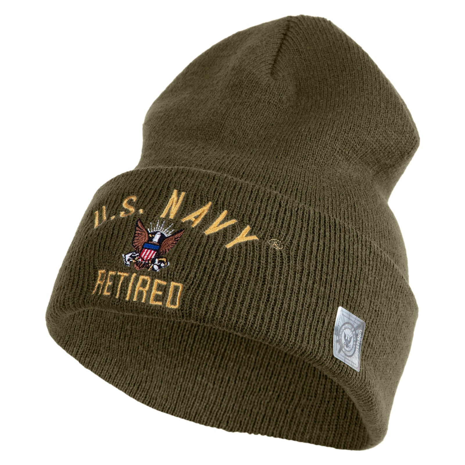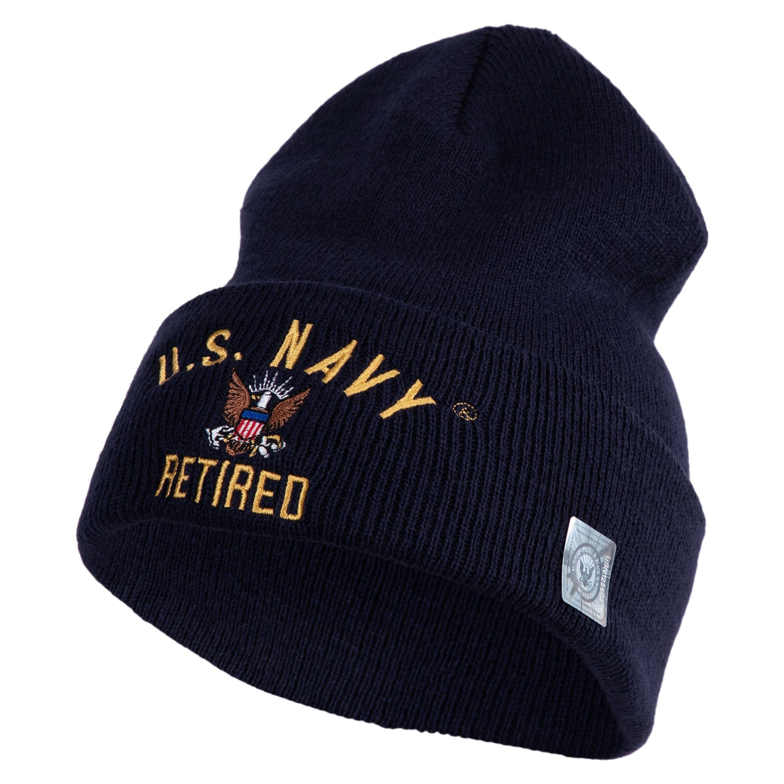 Title, US Navy Retired Military Embroidered 12 inch Cuffed Knit YP Long Beanie