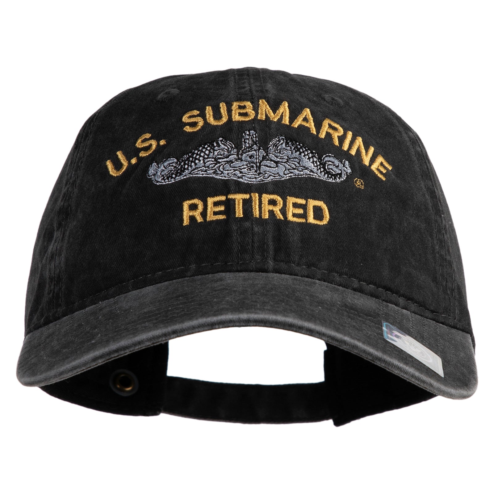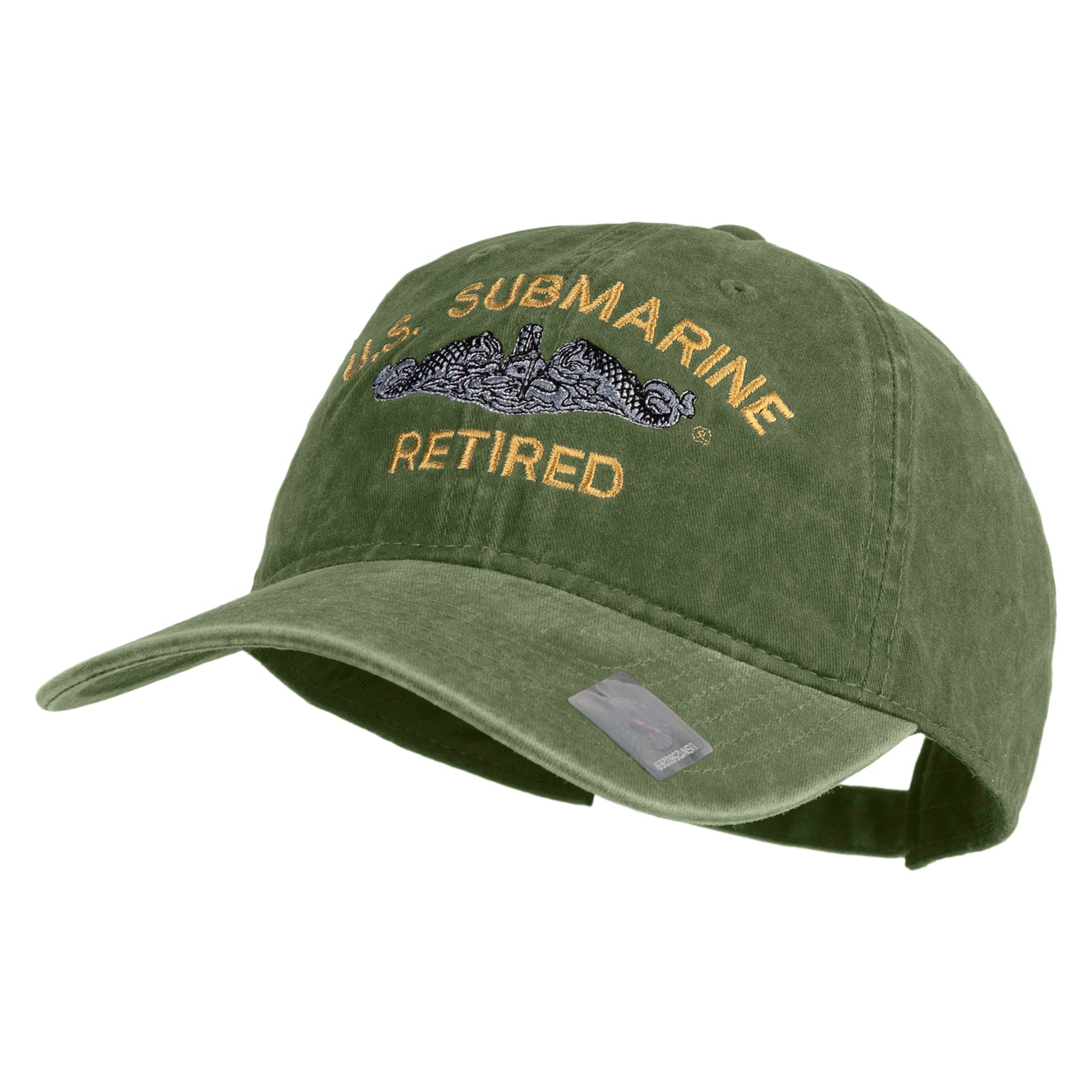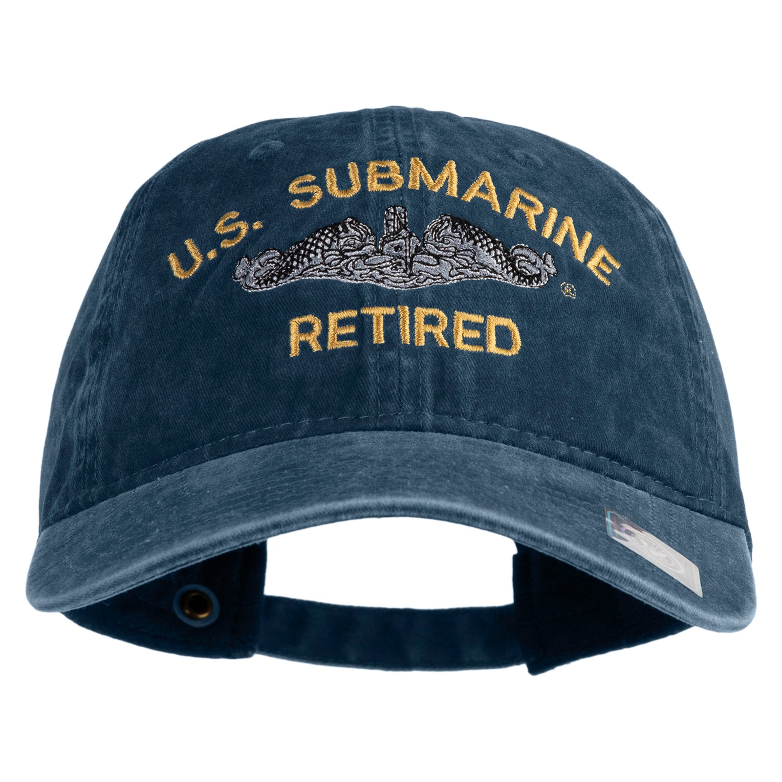Title, US Submarine Retired Embroidered Washed Solid Pigment Dyed Cotton Twill Brass Buckle Cap
