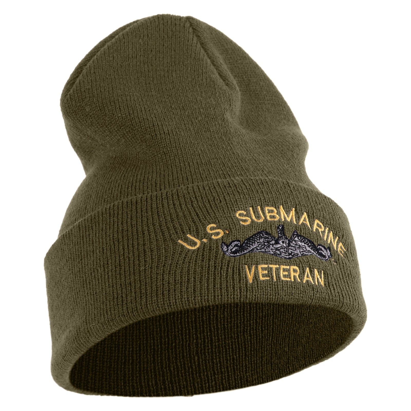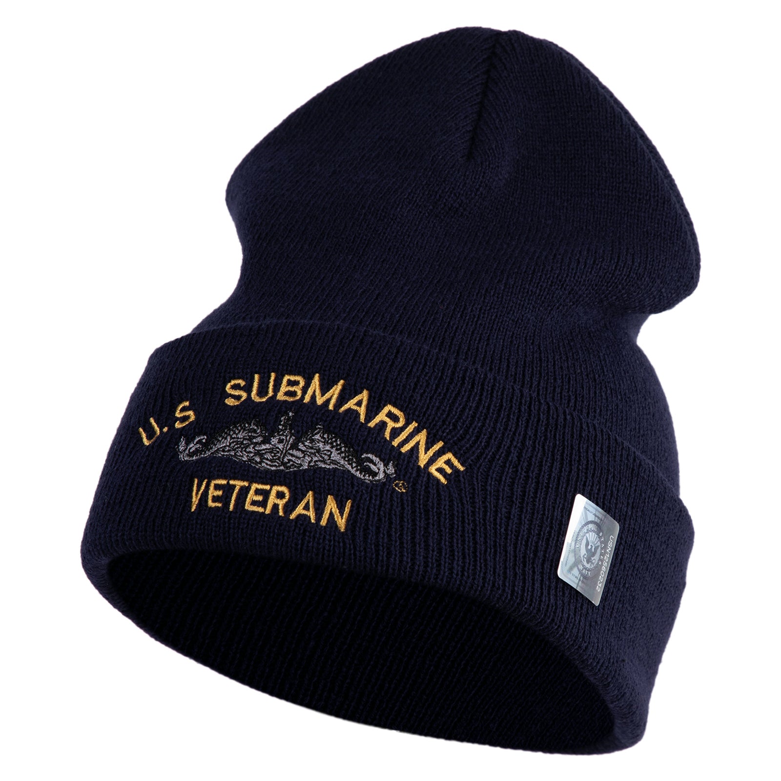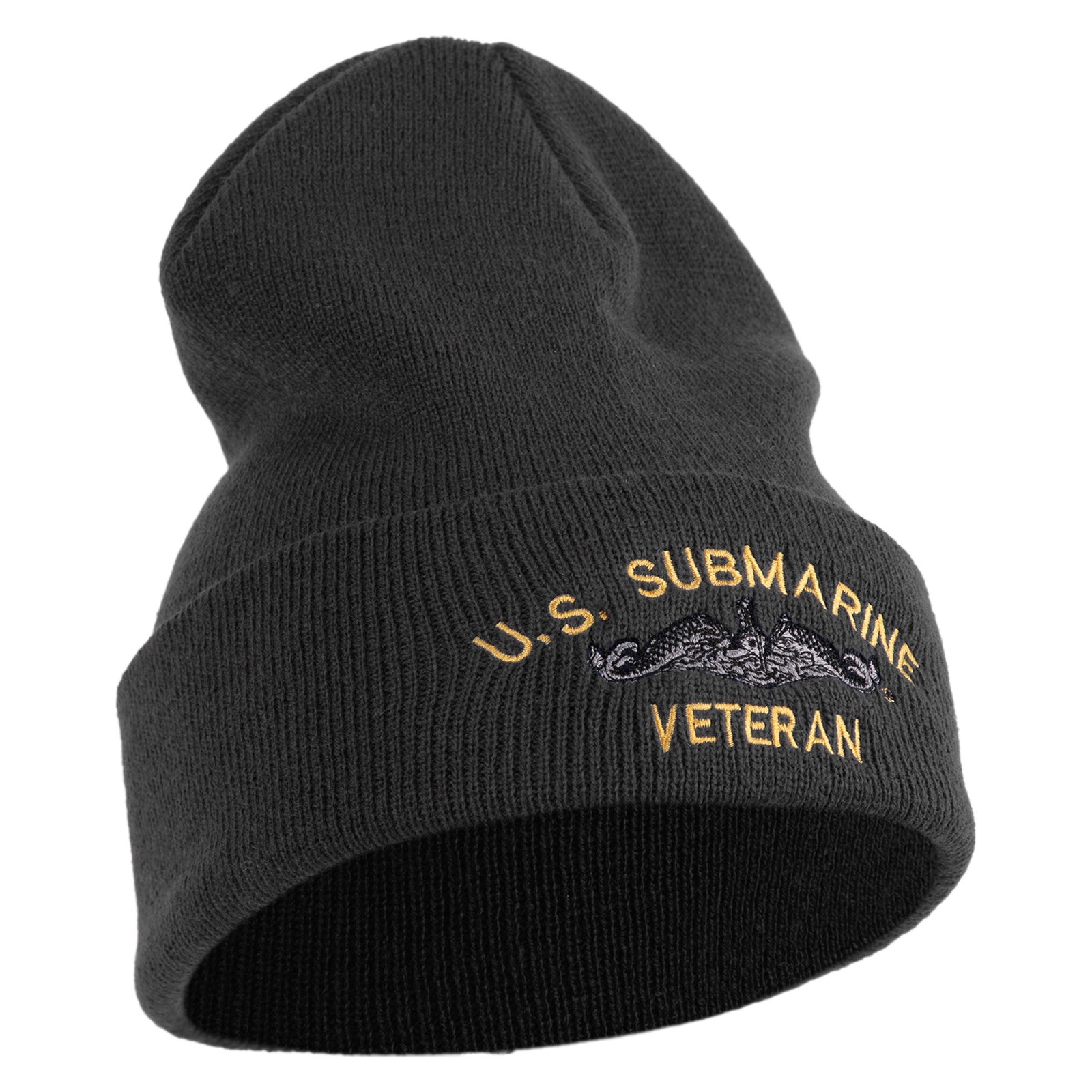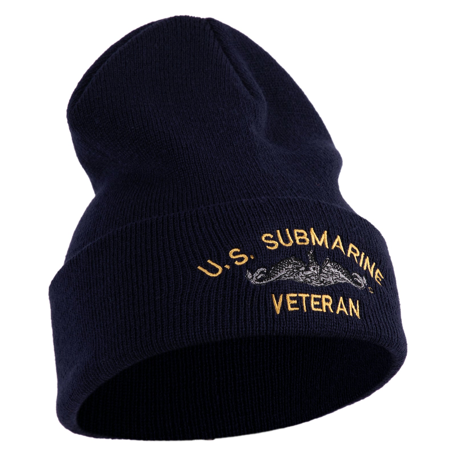 Title, US Submarine Veteran Military Embroidered 12 inch Cuffed Knit YP Long Beanie