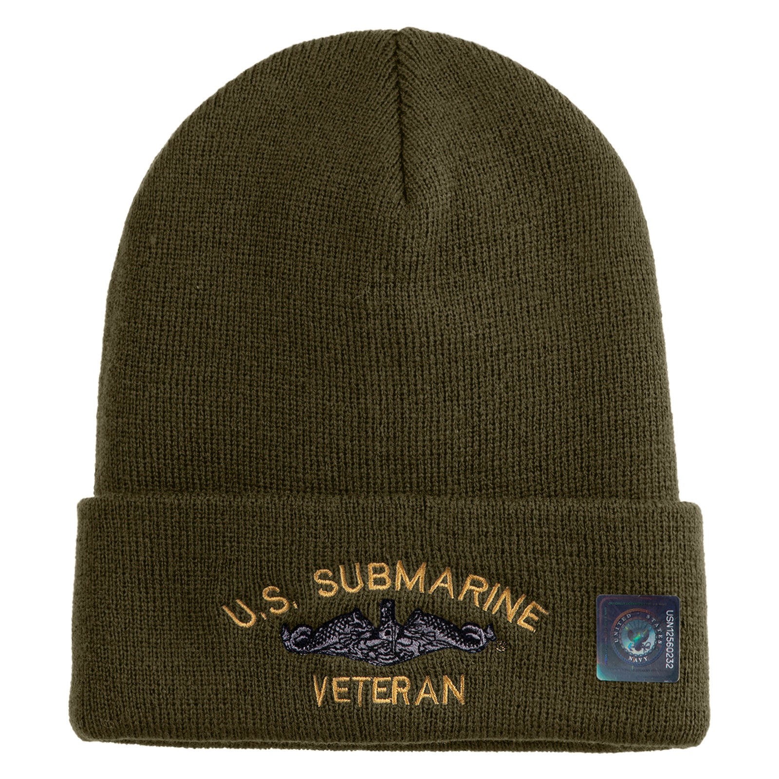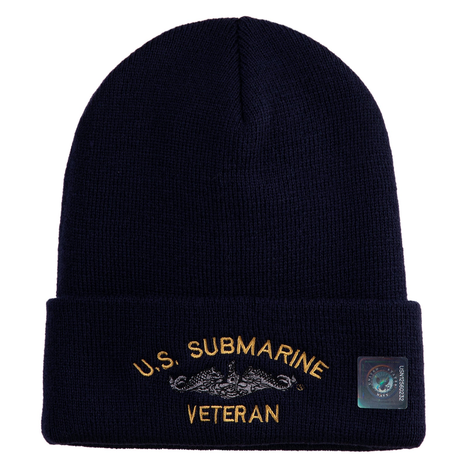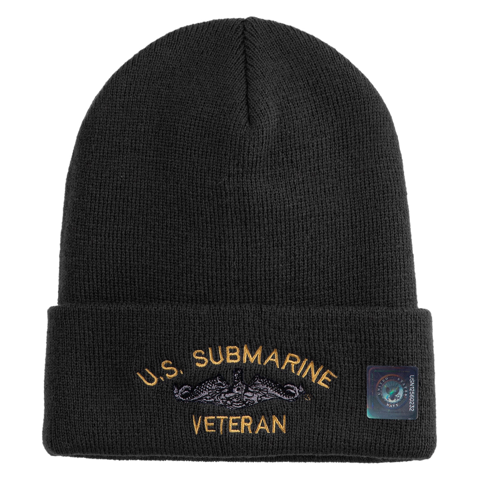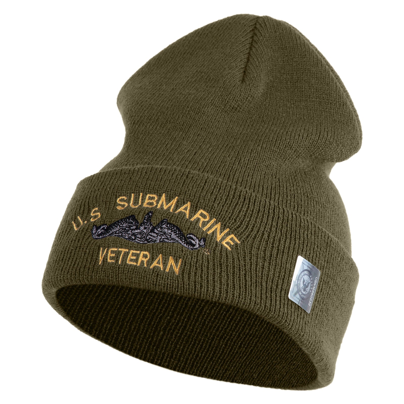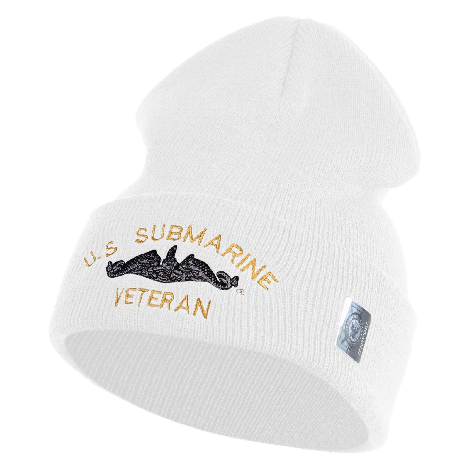 Title, US Submarine Veteran Military Embroidered 12 inch Cuffed Knit YP Long Beanie
