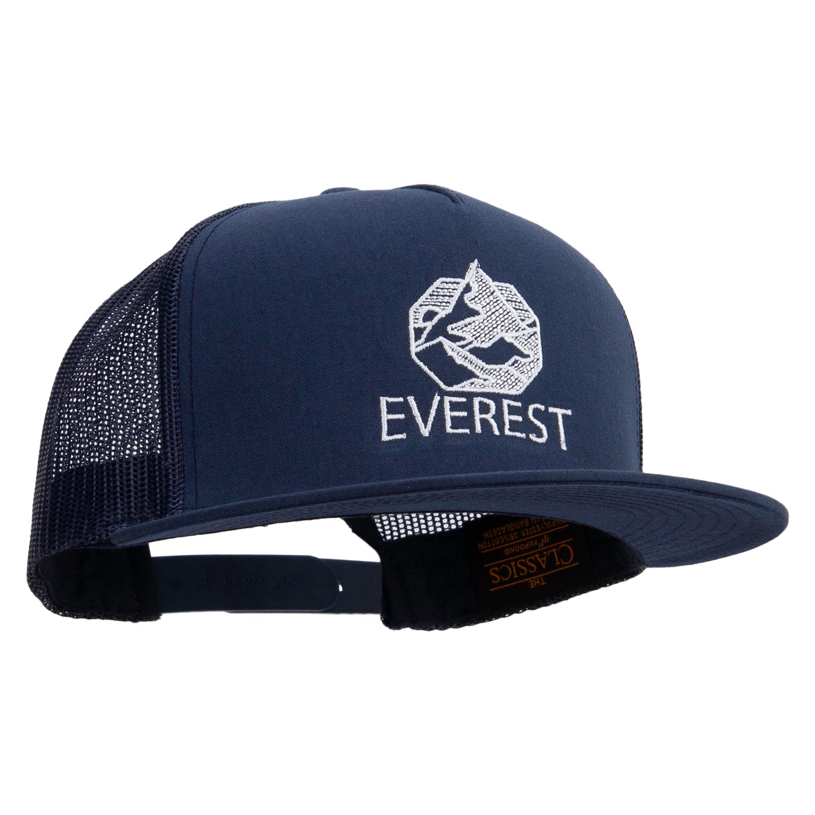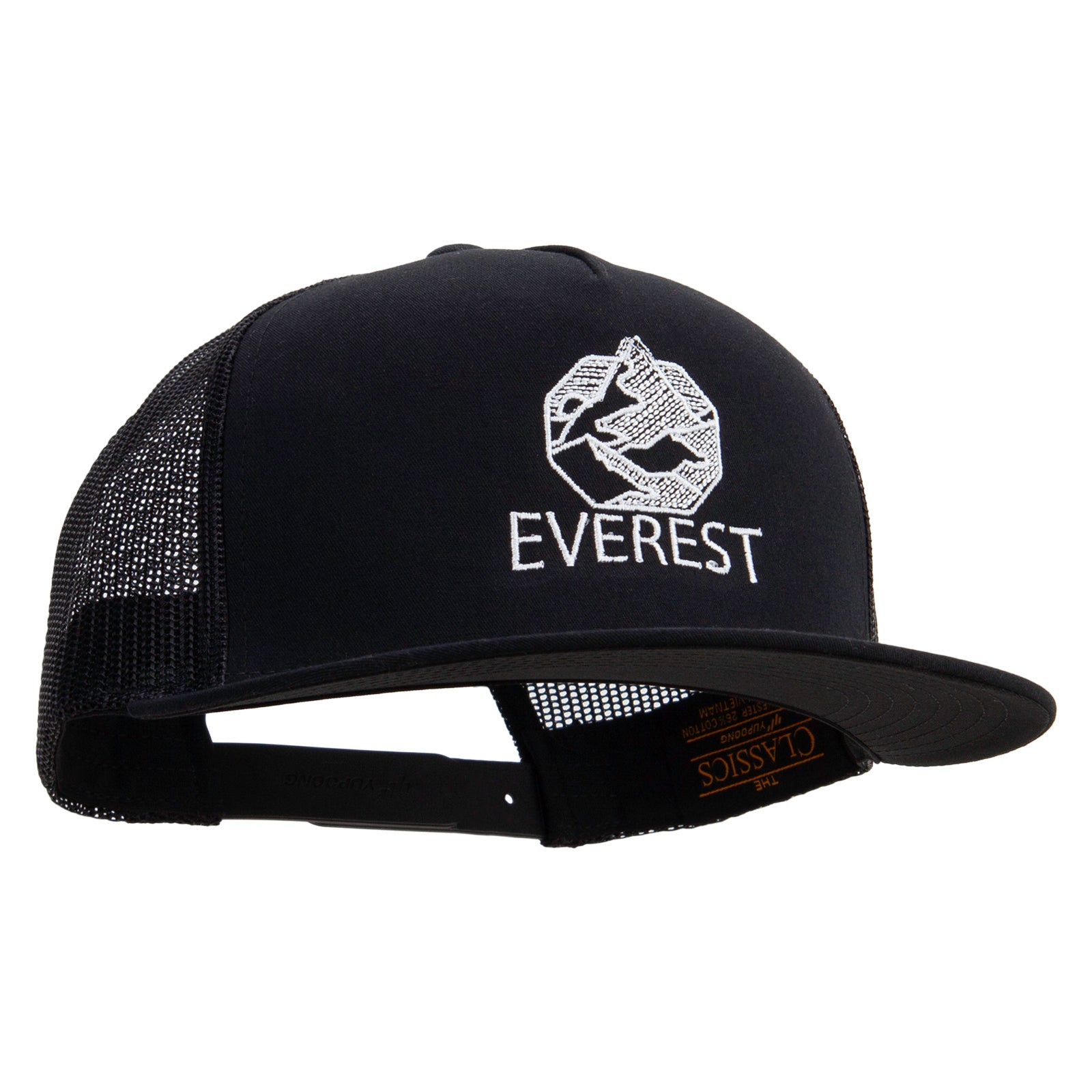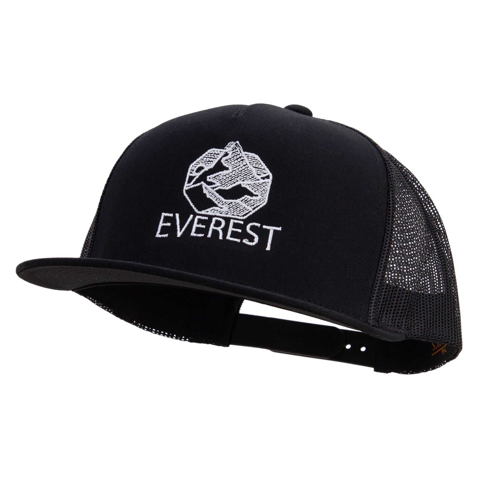 Breathable Design, A breathable and stylish 5-panel mesh snapback cap, featuring an embroidered Everest design