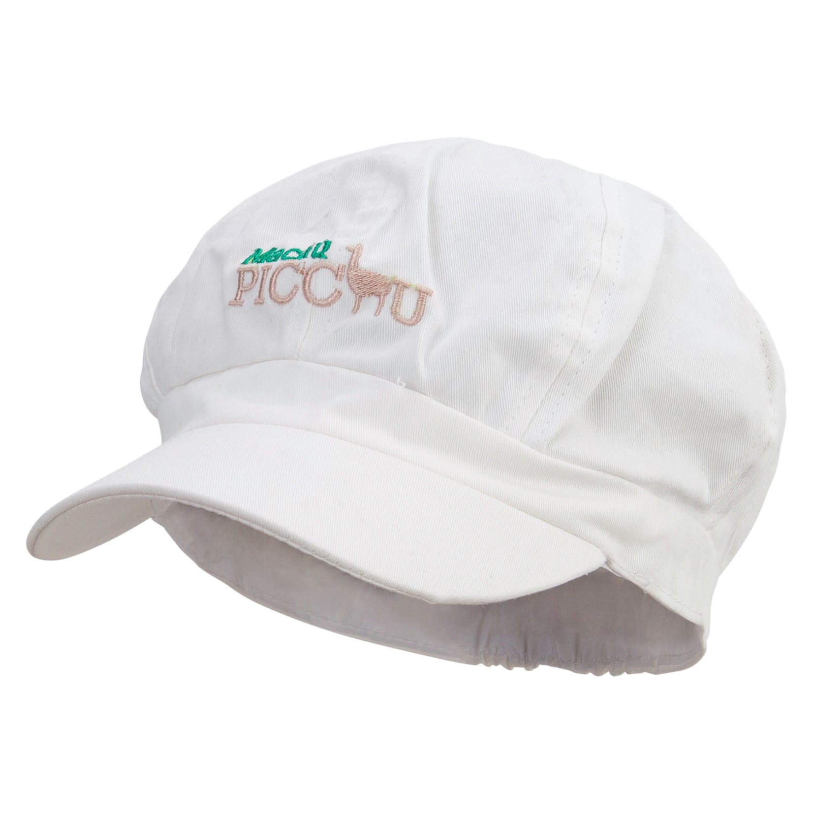 Title, Machu Picchu Llama Embroidered Cotton Elastic Newsboy Cap