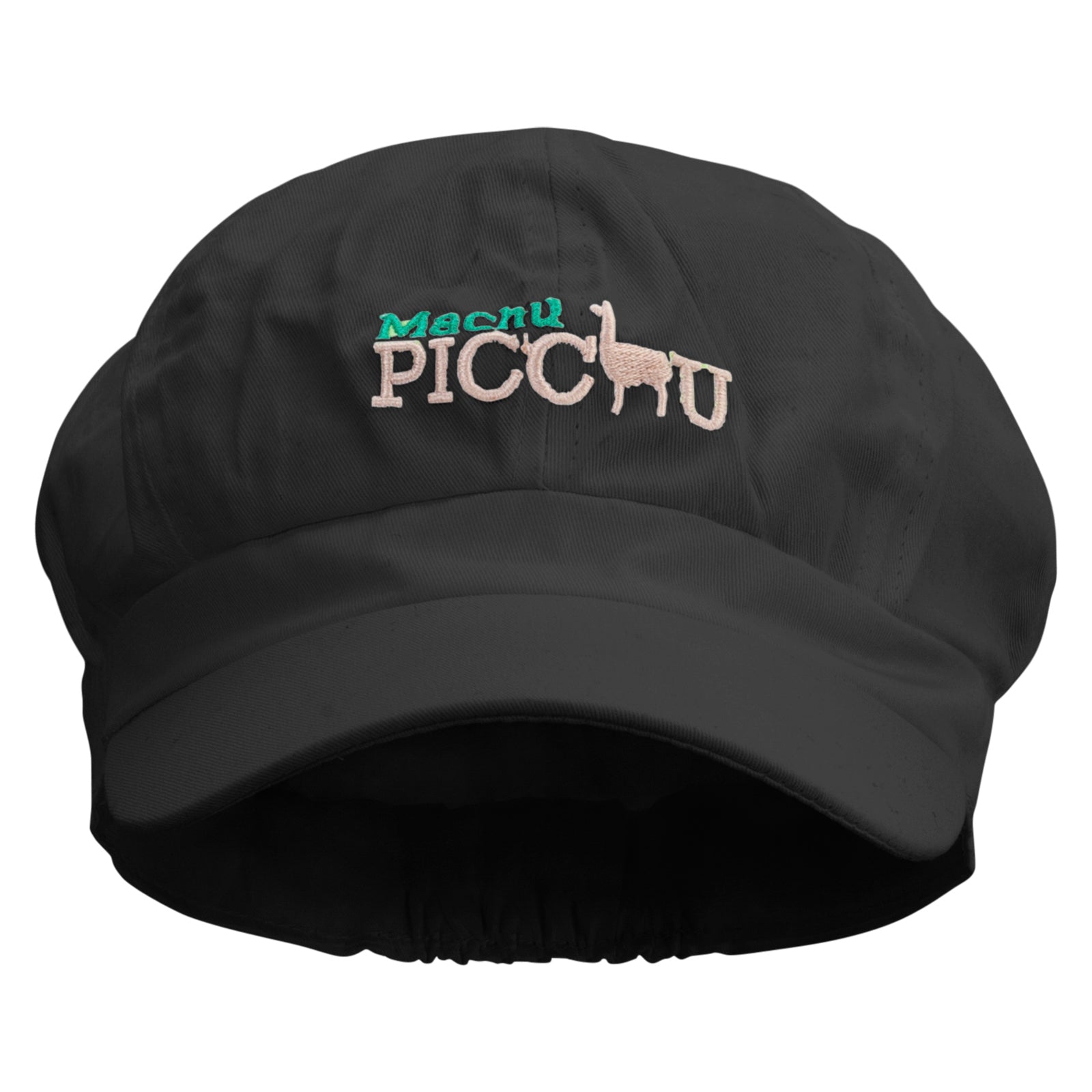 Distinctive Design, A unique and stylish cotton elastic newsboy cap, featuring an embroidered Machu Picchu Llama design