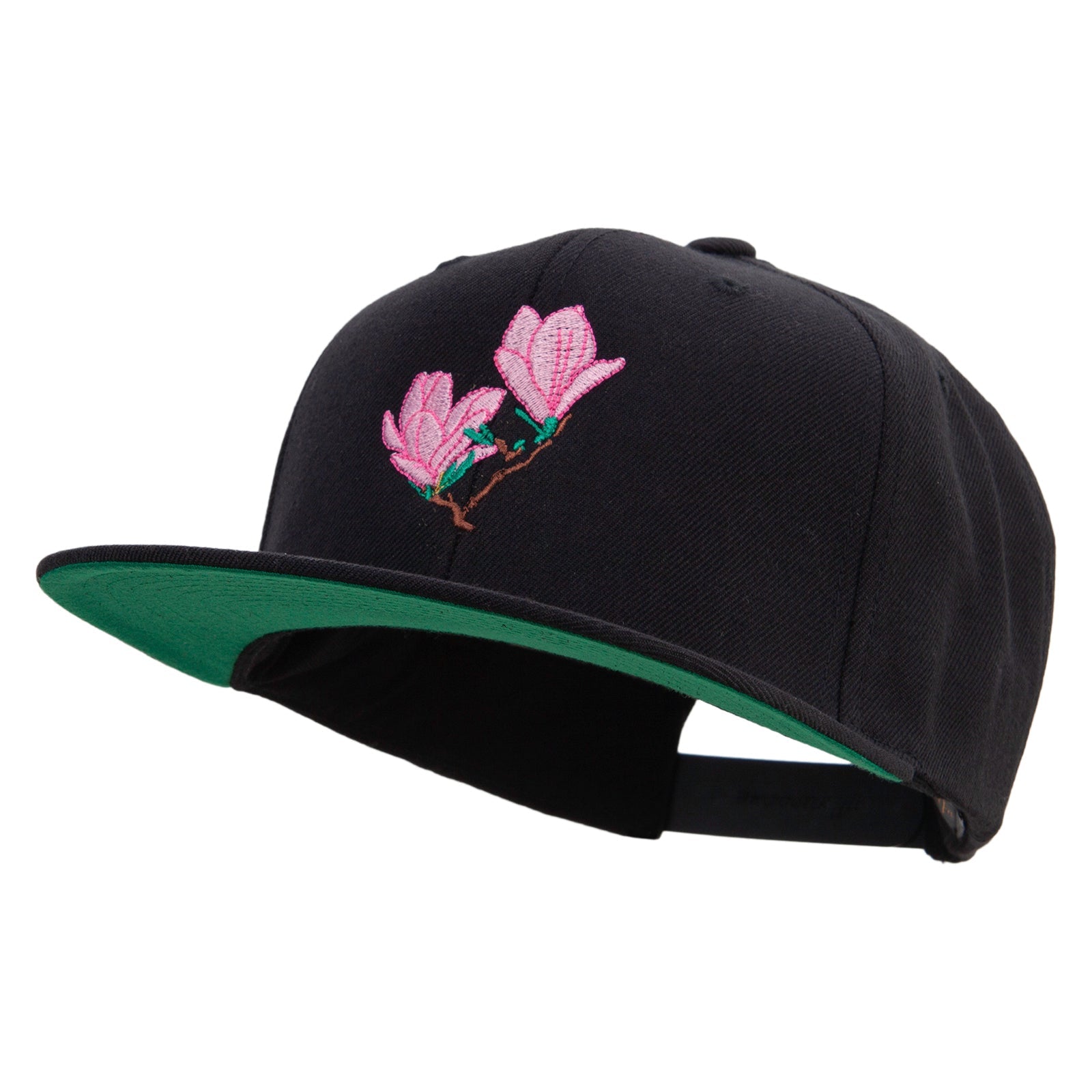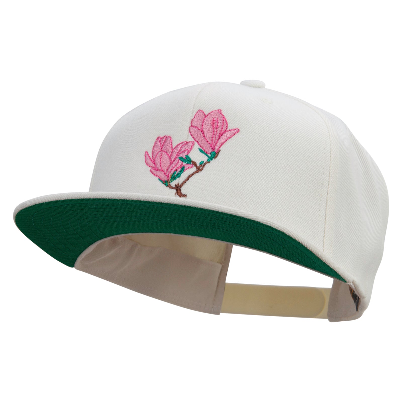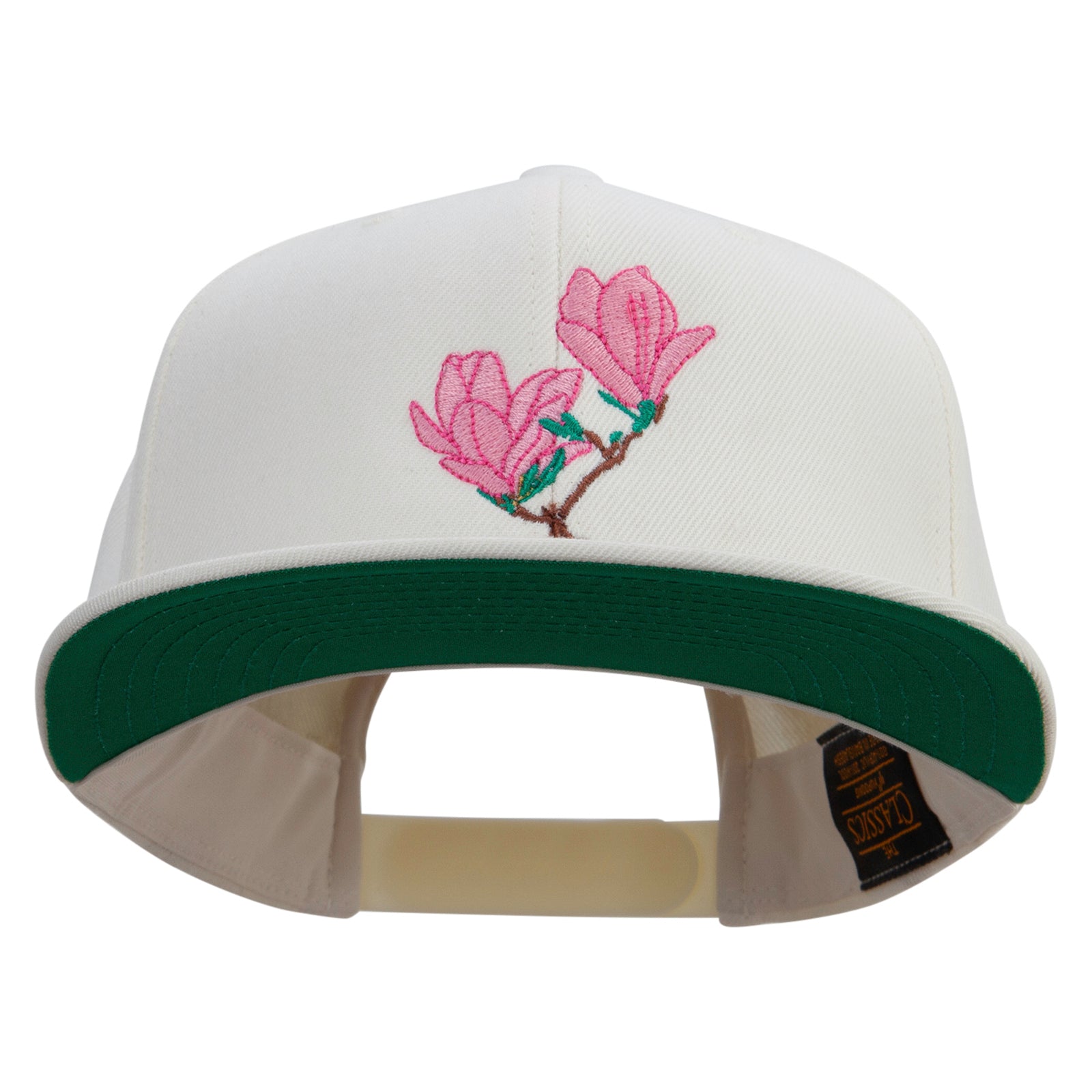 Pink Magnolia Flowers Embroidered Wool Blend Prostyle Snapback