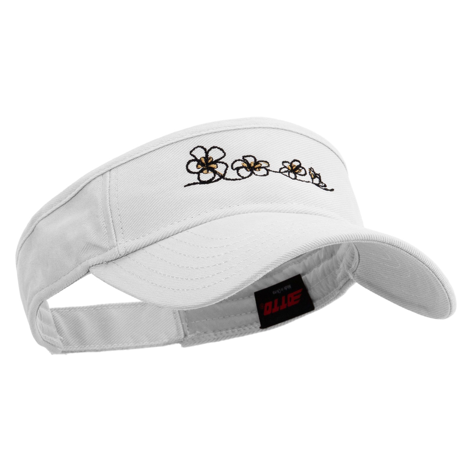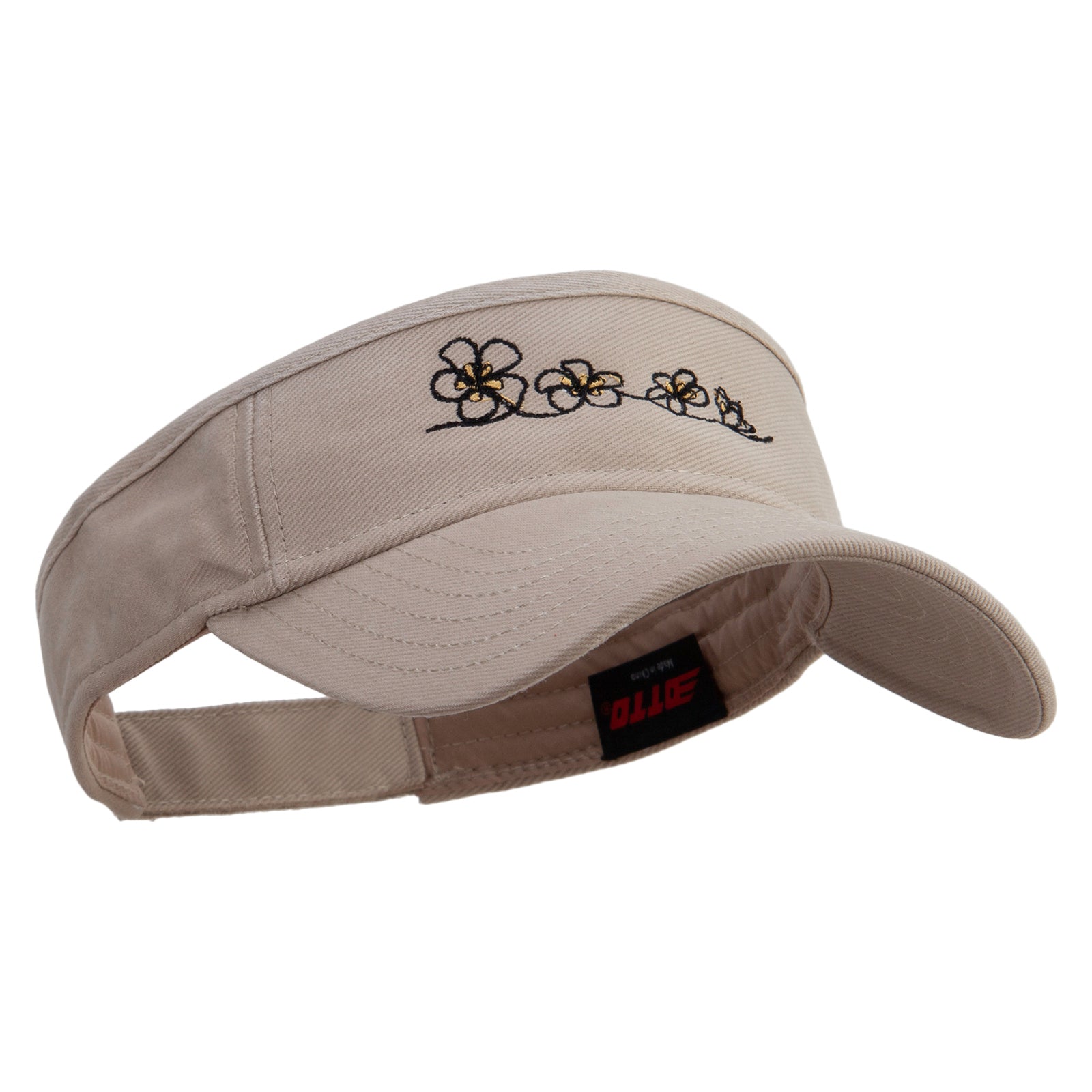Plumeria Flowers Embroidered Brushed Bull Denim Sun Visor