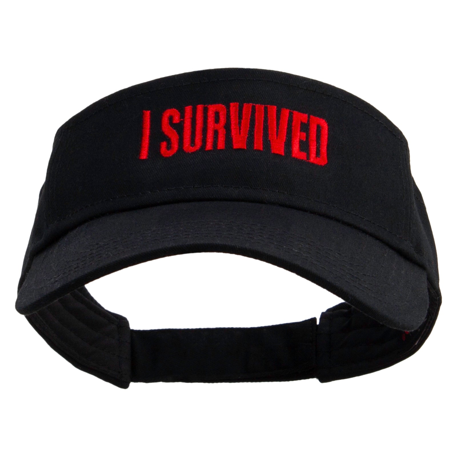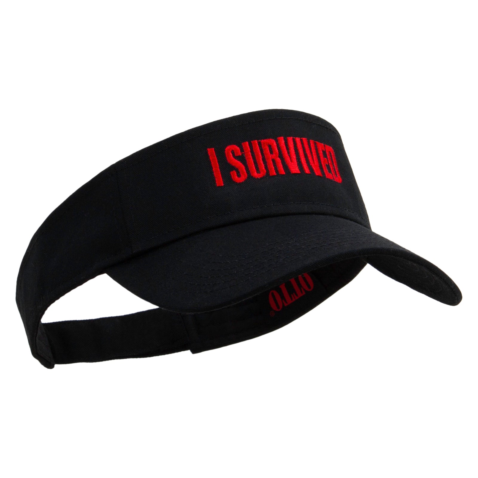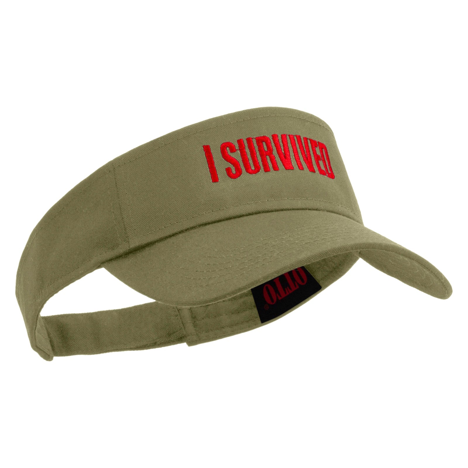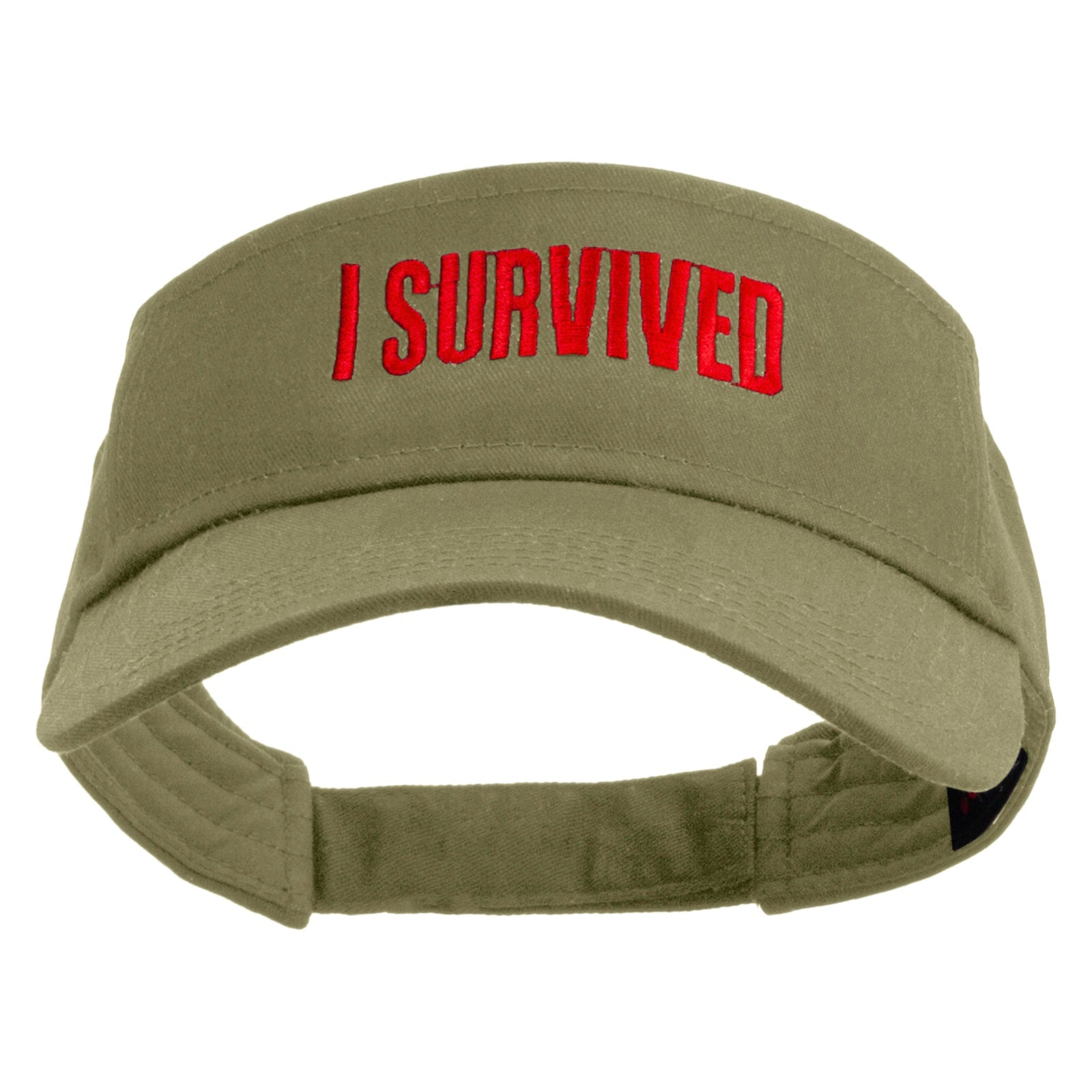 Humorous Flair, A bold and fun cotton twill sun visor, featuring the embroidered phrase "I Survived" - perfect for adding a touch of humor and resilience to your outdoor adventures
