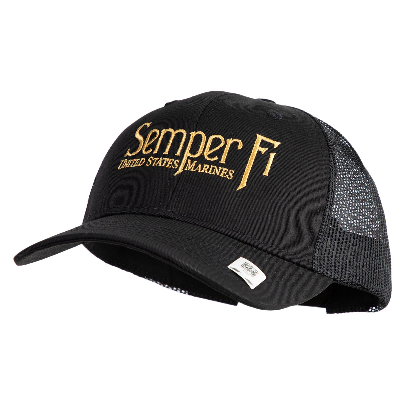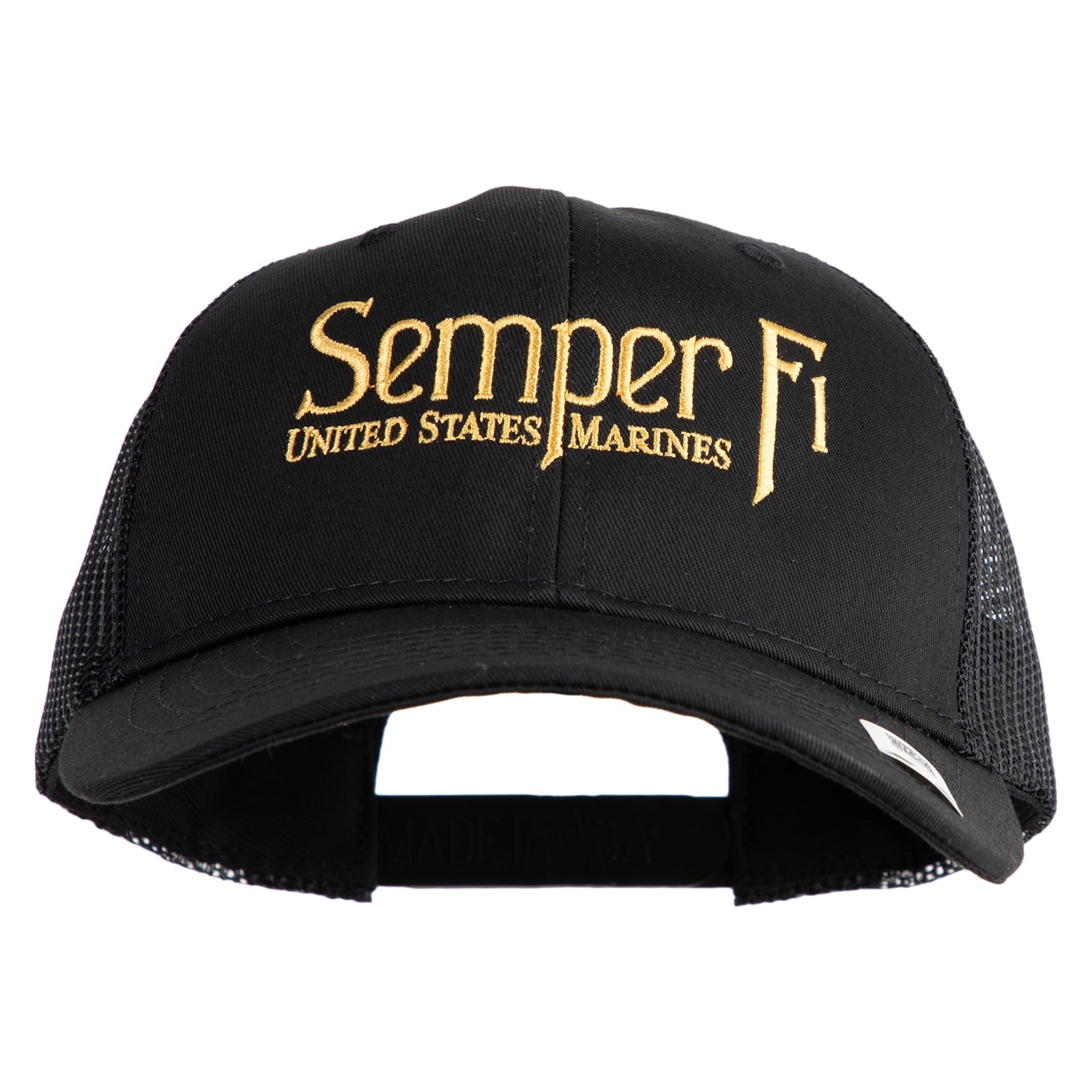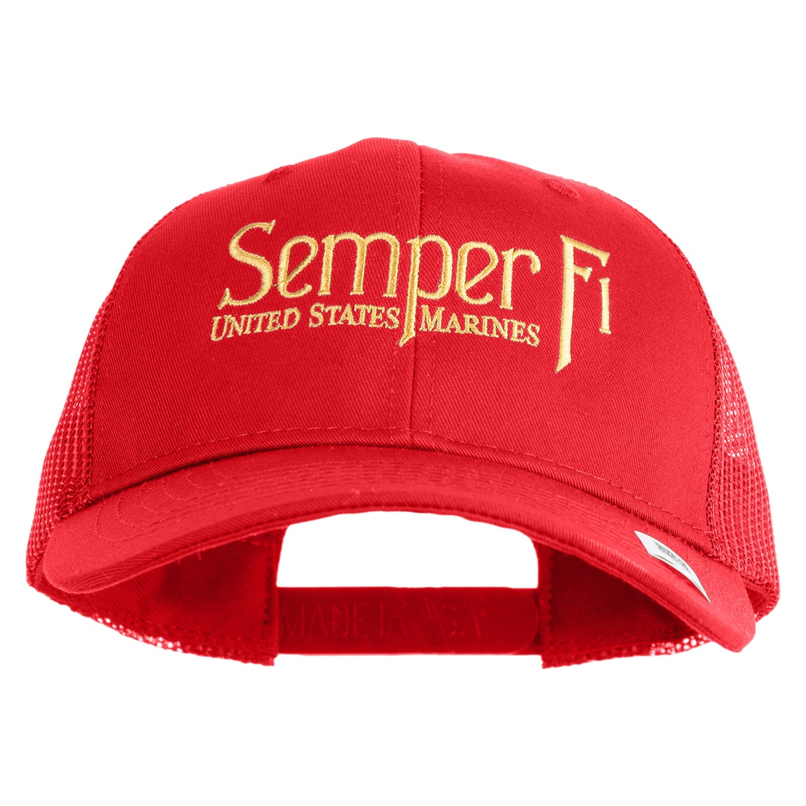 Title, United States Marines Semper Fi Embroidered 6 Panel Structured Cotton Twill Mesh Cap Made in USA