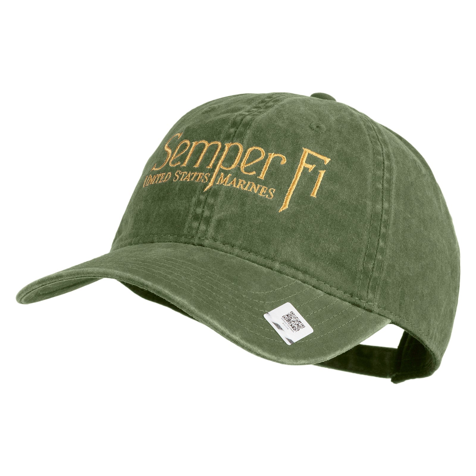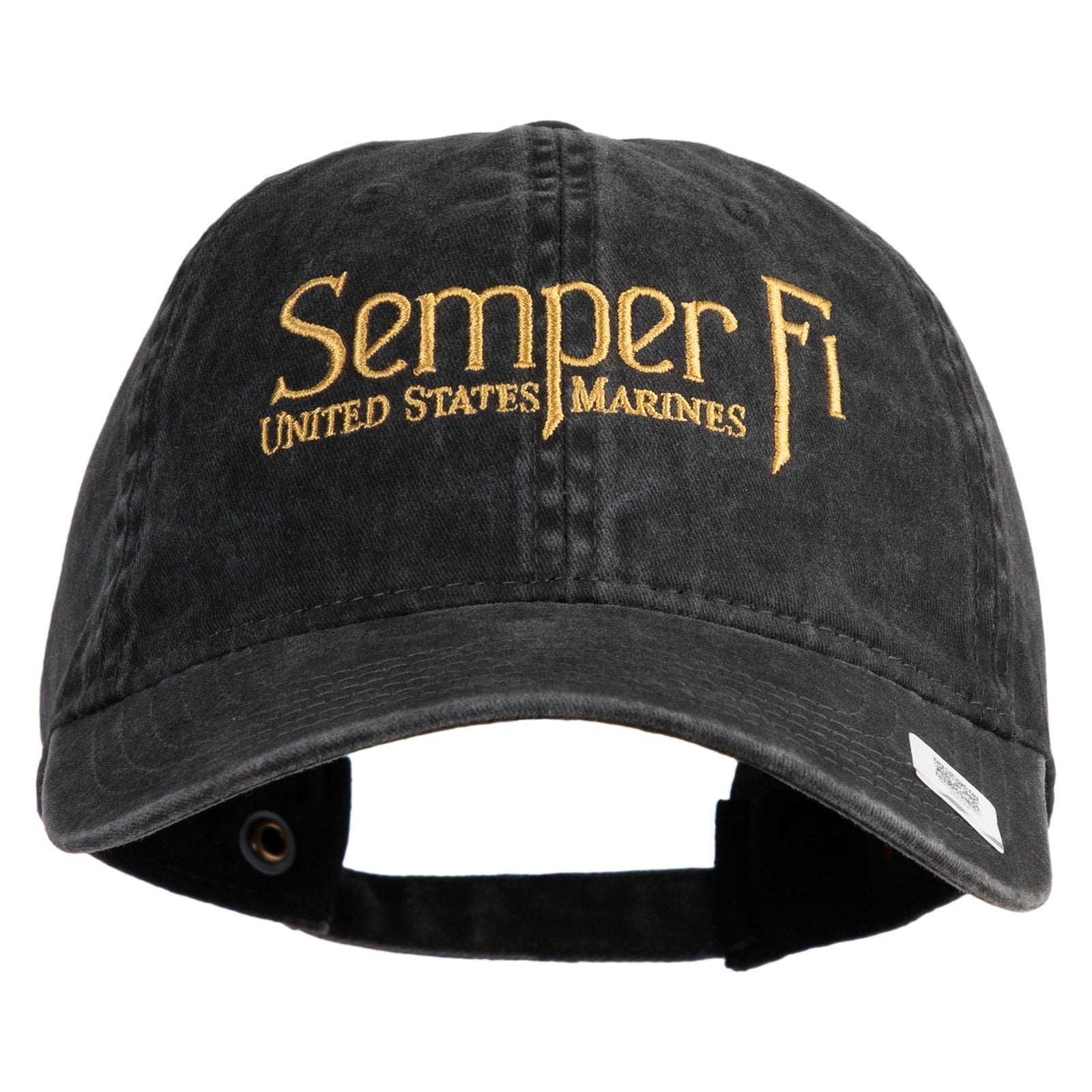 Title, United States Marines Semper Fi Embroidered Washed Solid Pigment Dyed Cotton Twill Brass Buckle Cap
