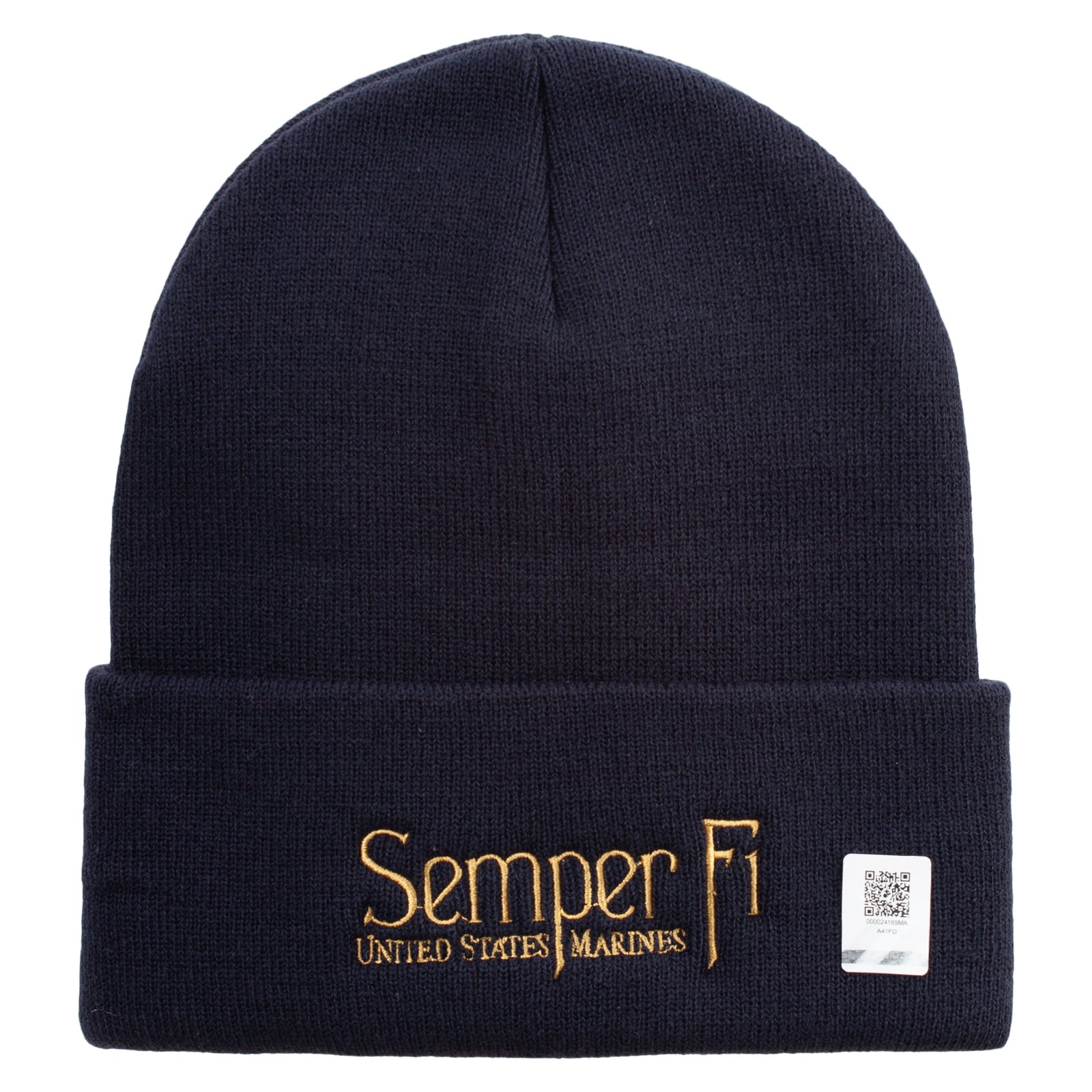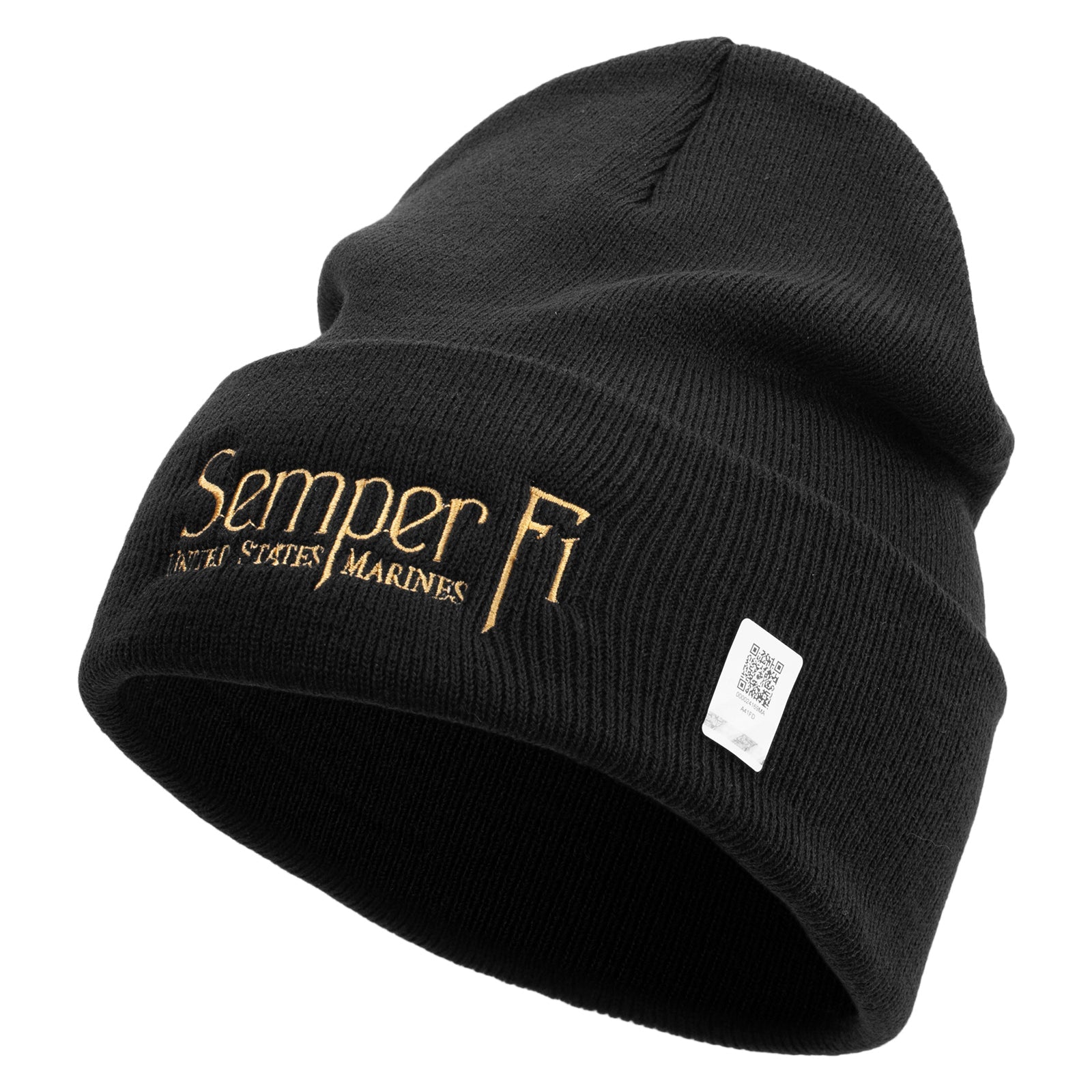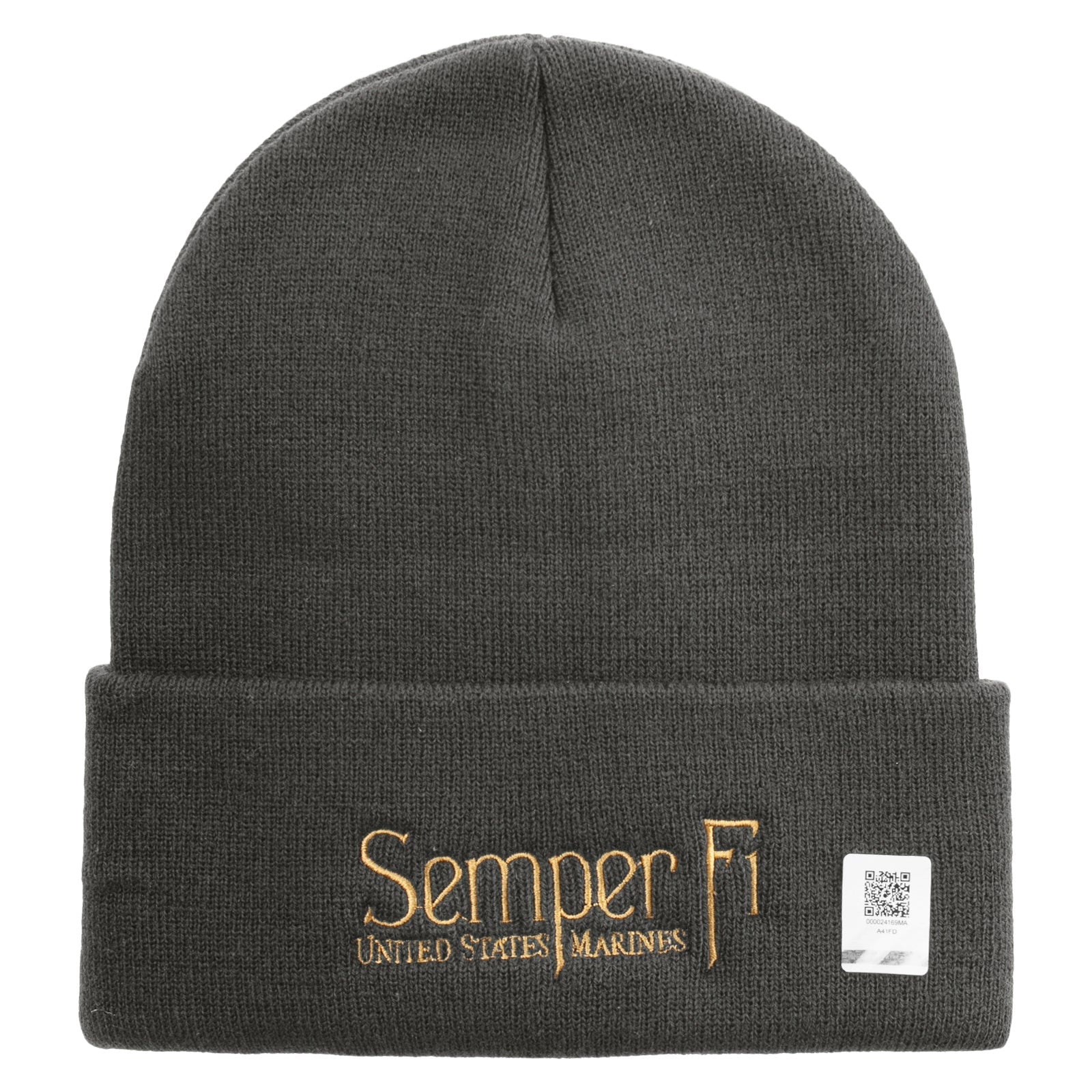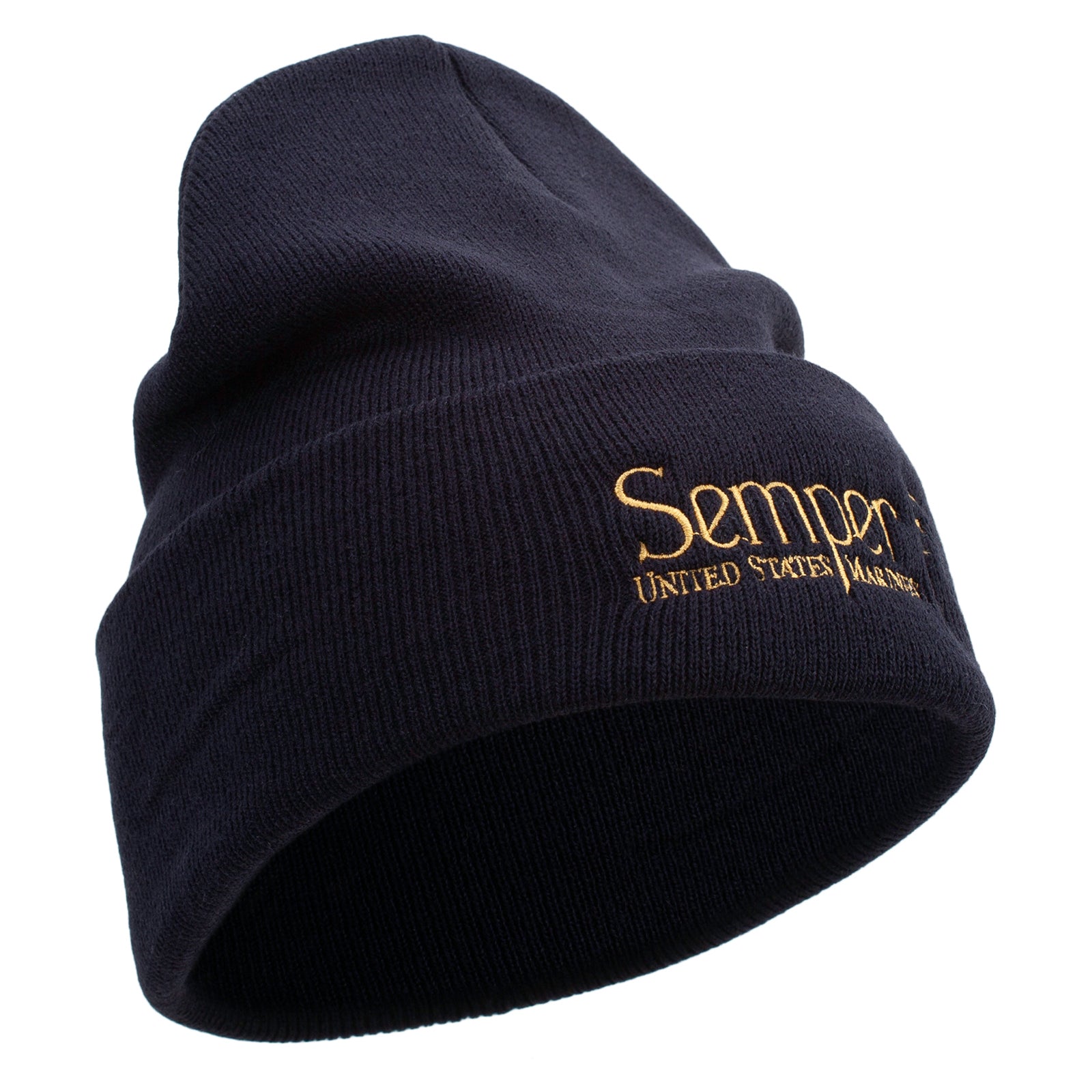 Title, United States Marines Semper Fi Logo Embroidered 12 Inch Solid Knit Cuff Long Beanie Made in USA