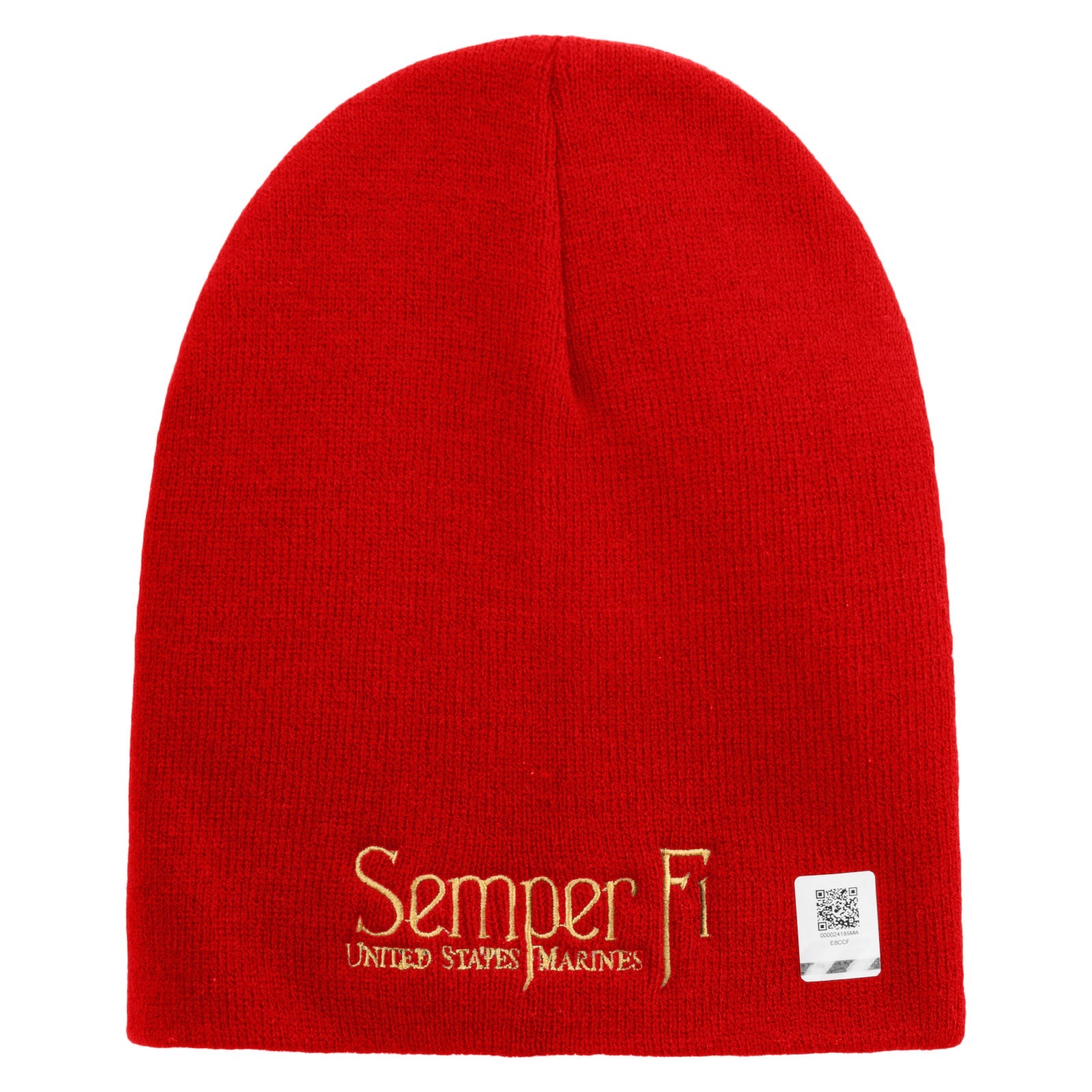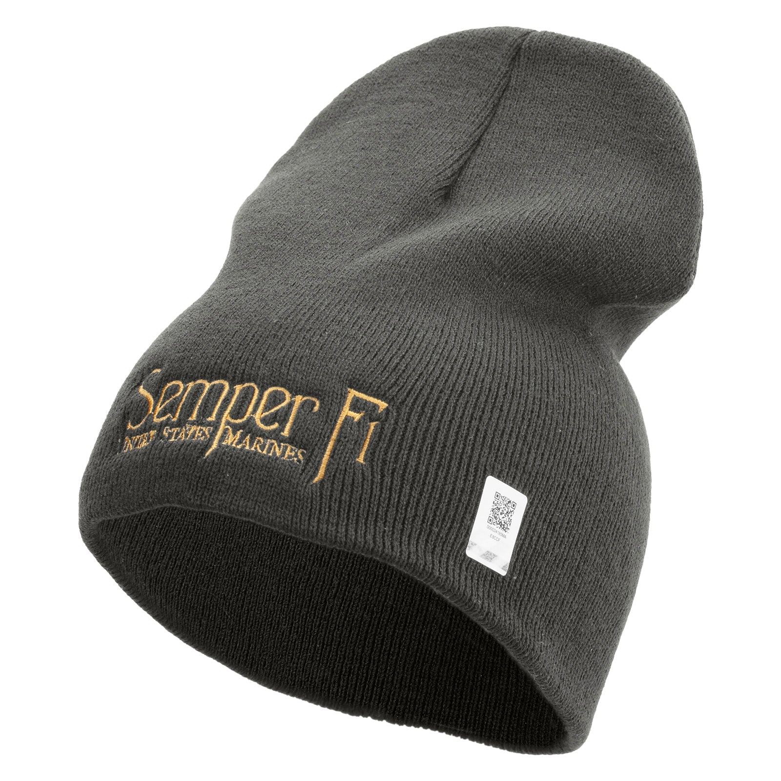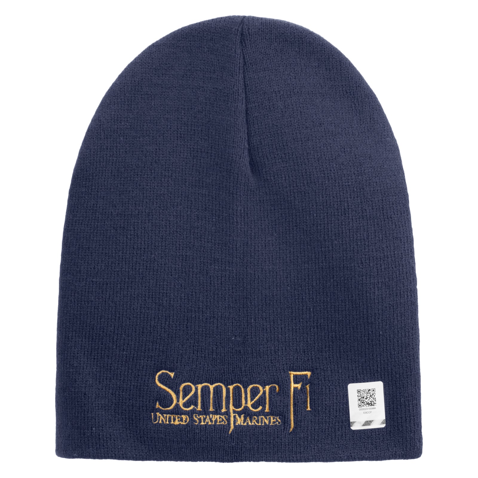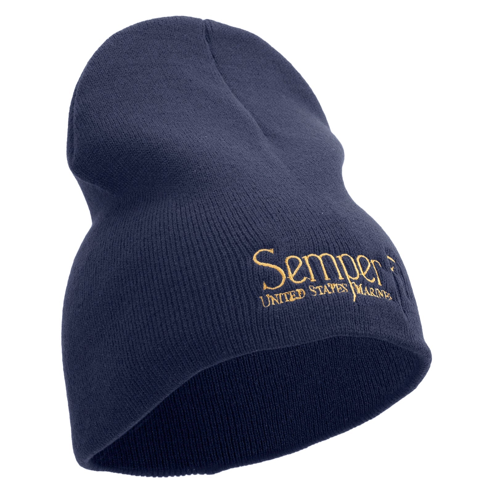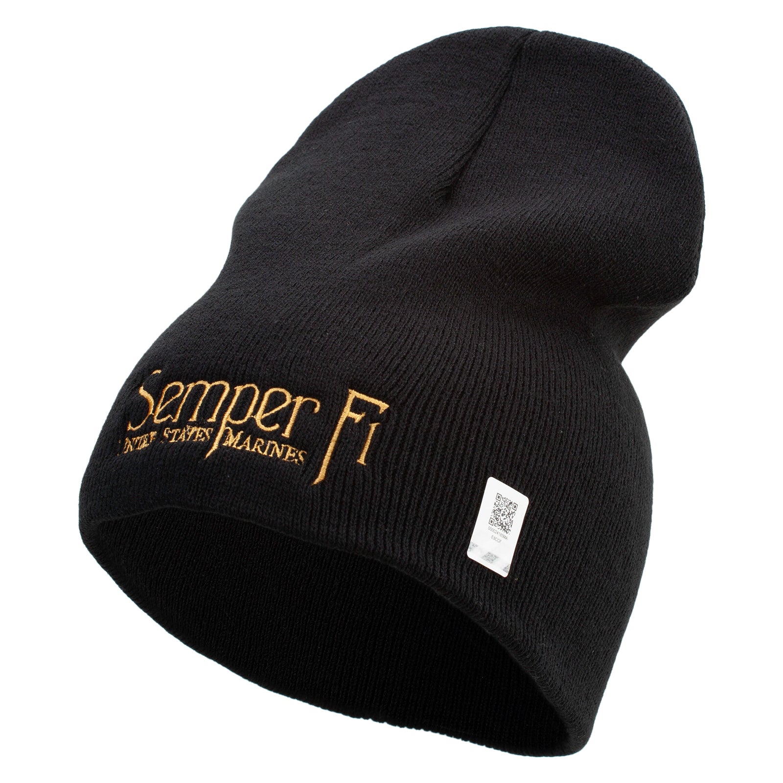Title, United States Marines Semper Fi Symbol Embroidered 8 Inch Solid Knit Short Beanie Made in USA