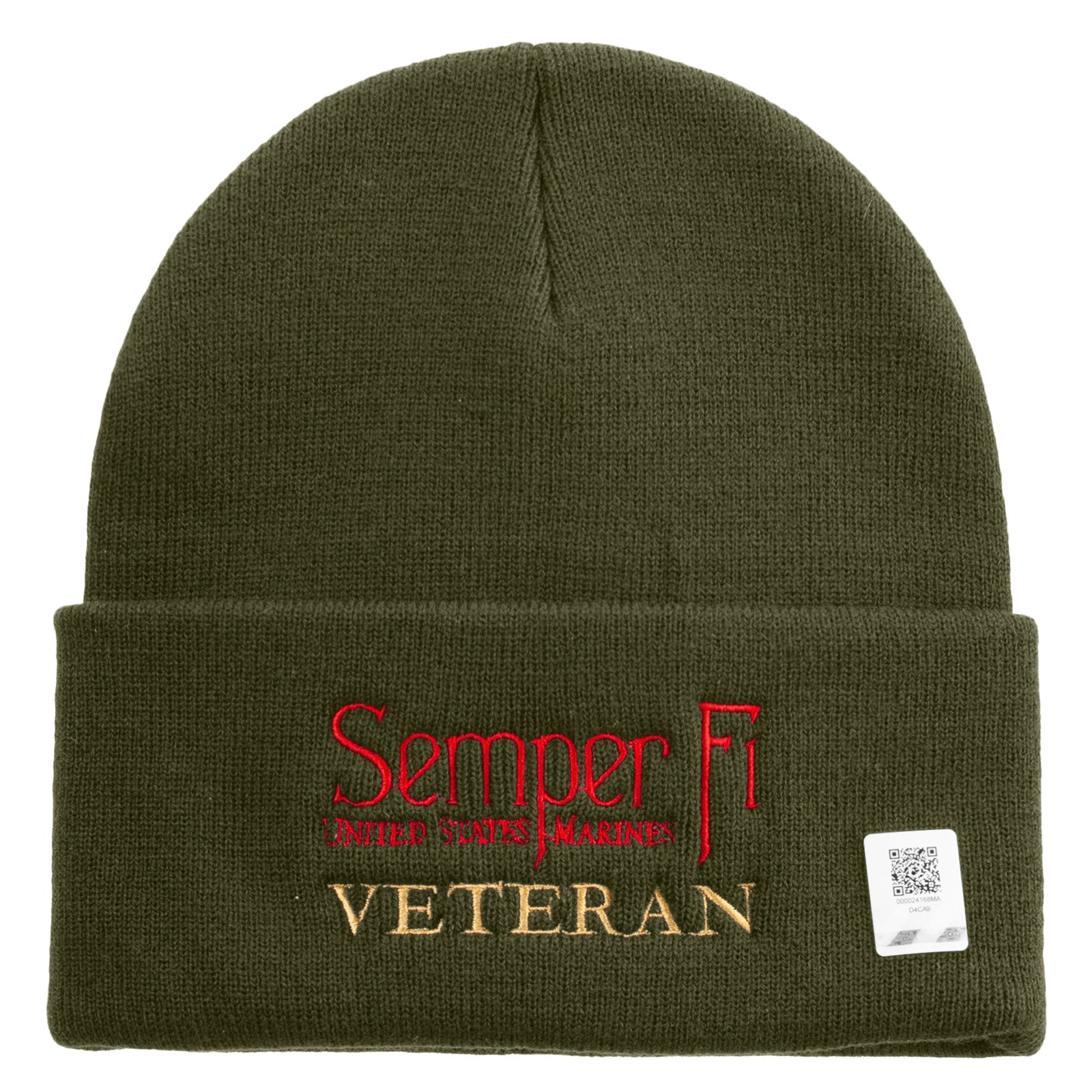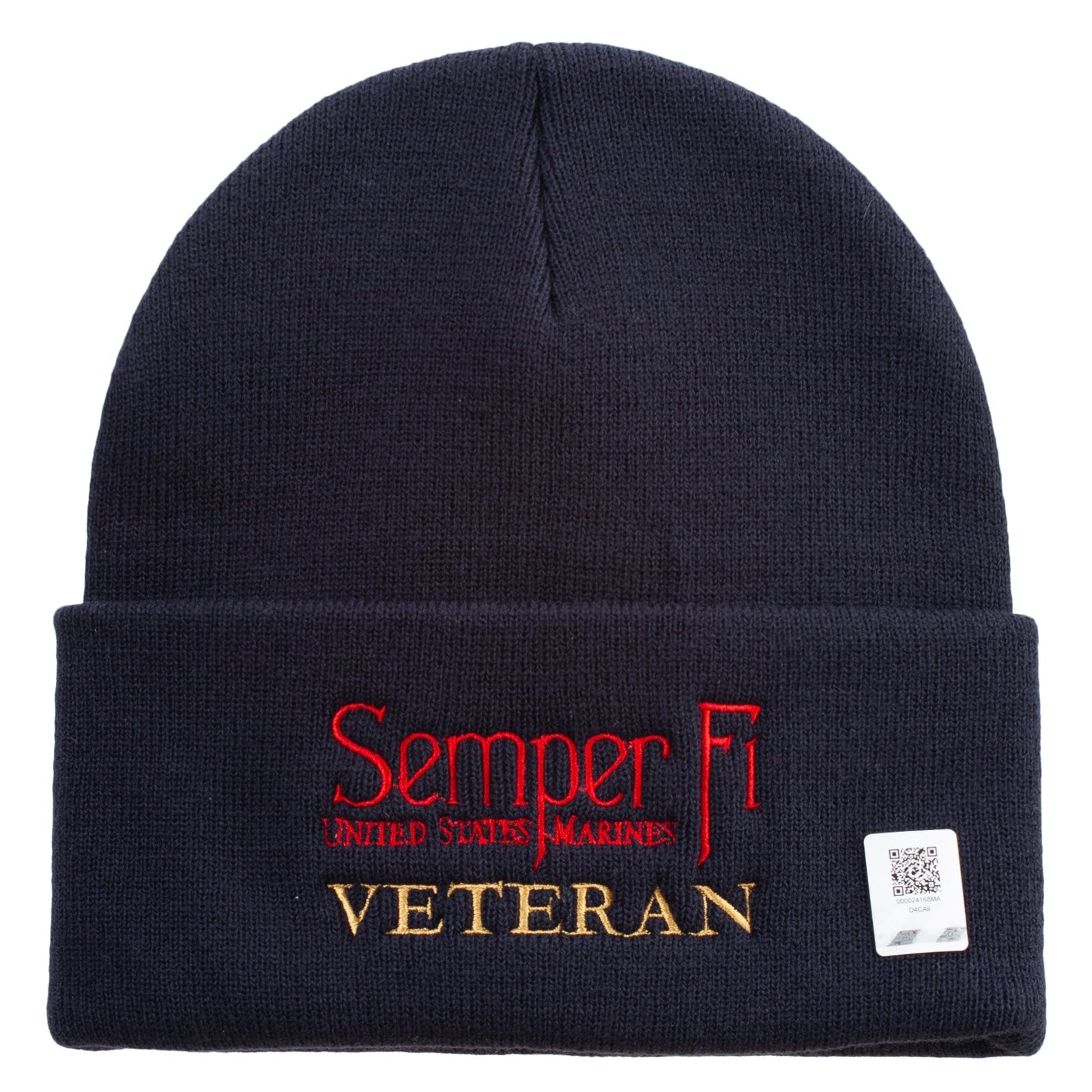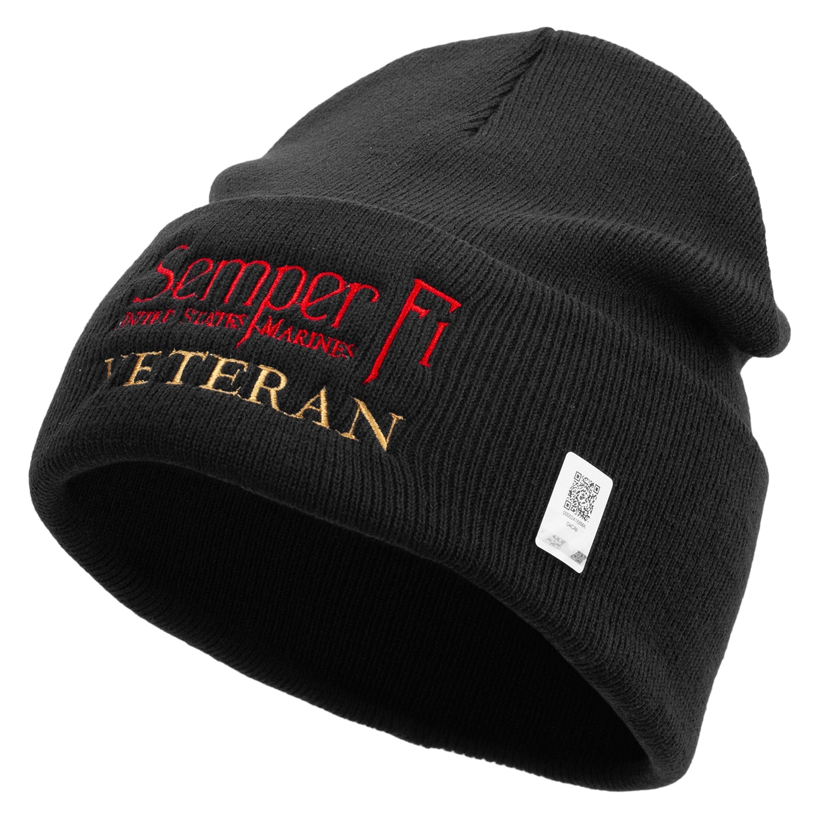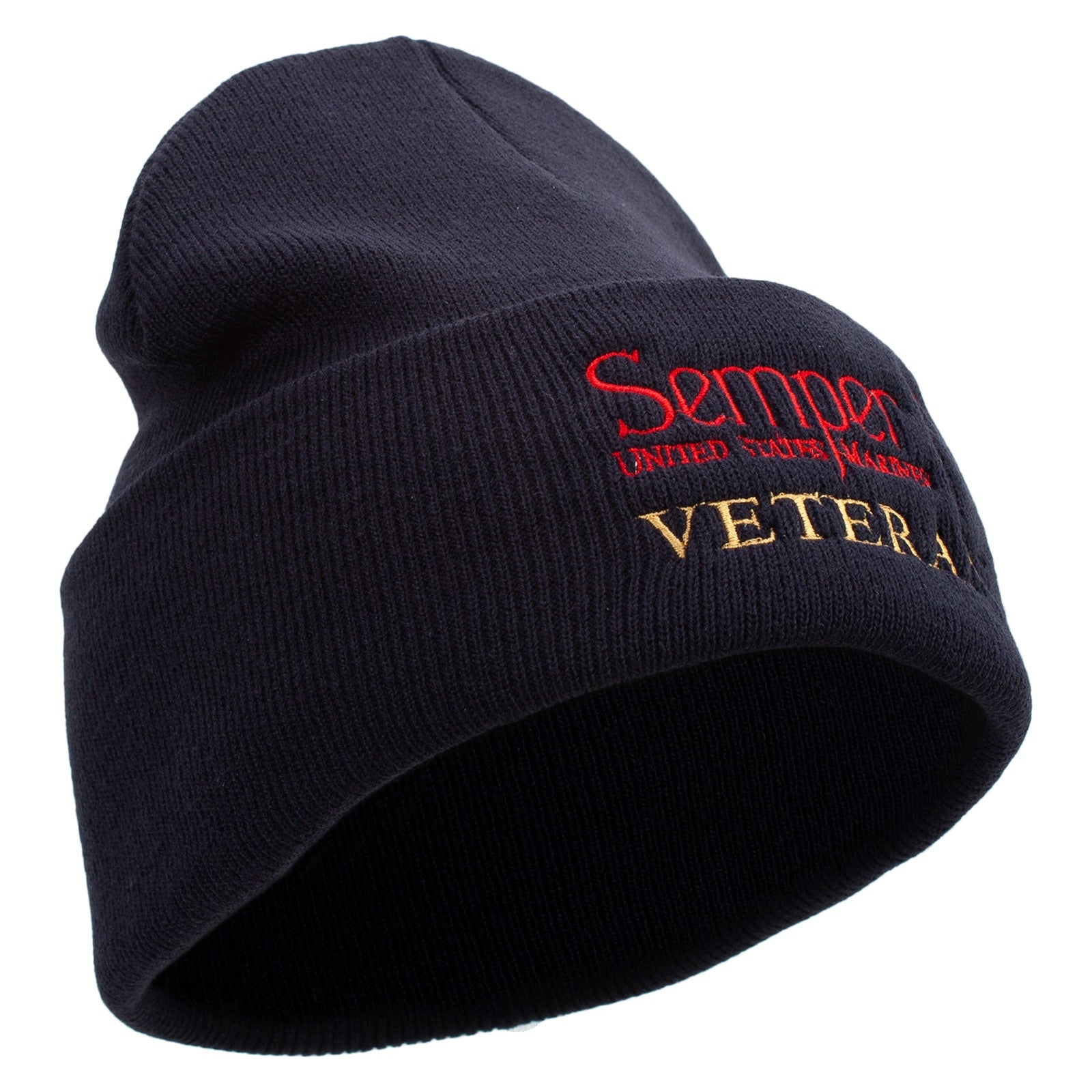 Title, United States Marines Semper Fi Veteran Logo Embroidered 12 Inch Solid Knit Cuff Long Beanie Made in USA