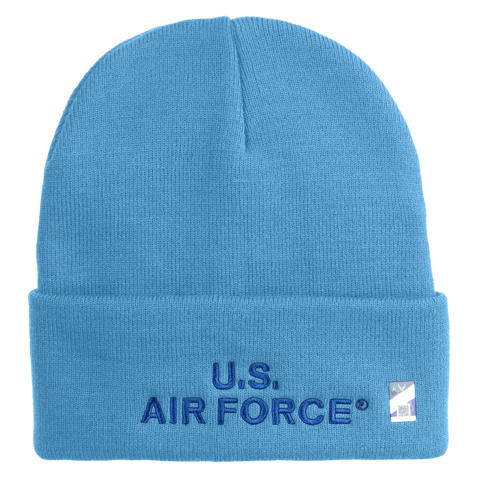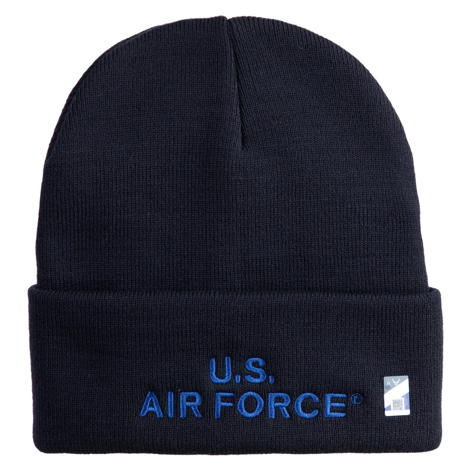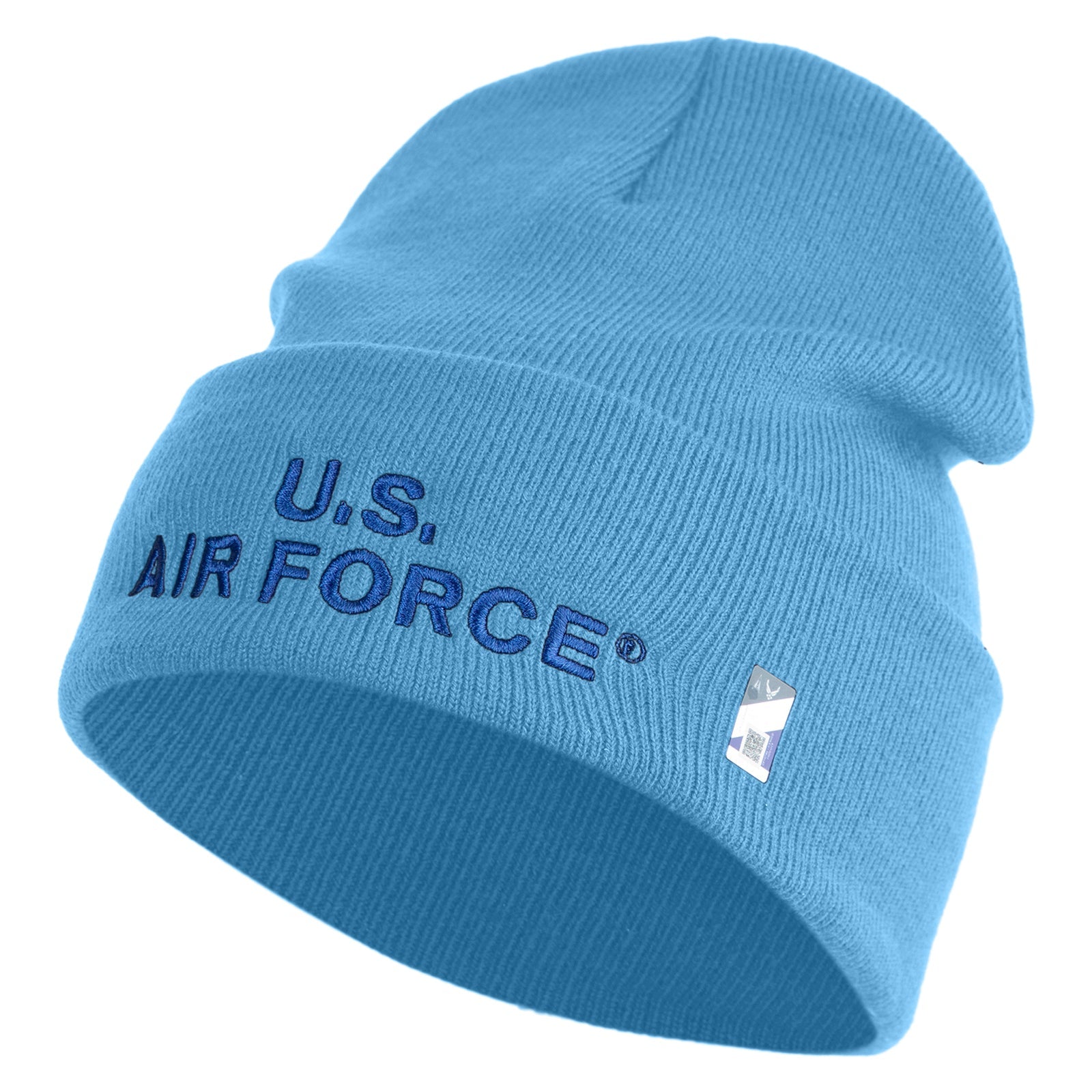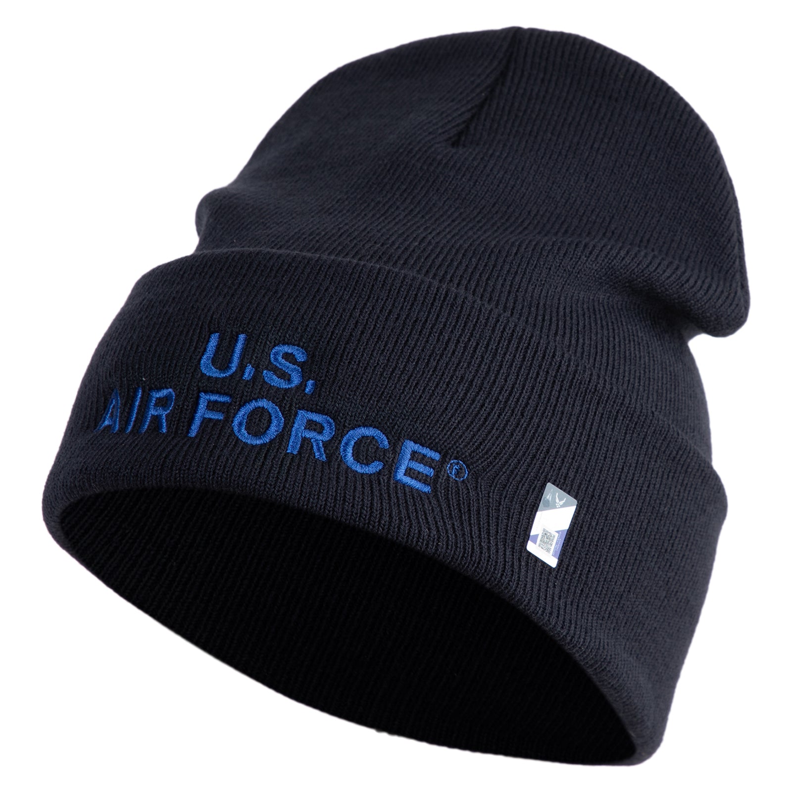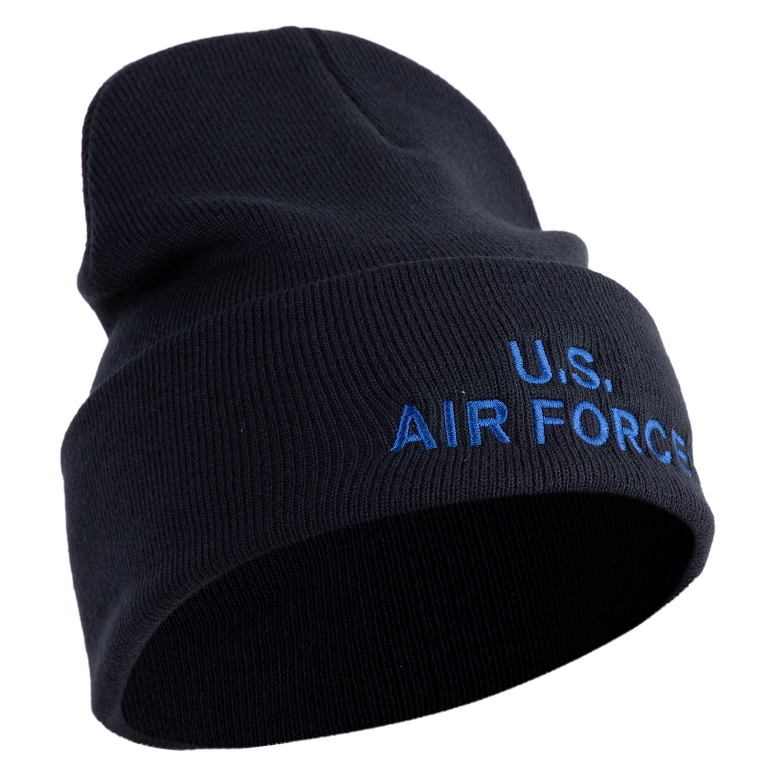Title, US Air Force Navy Letter Logo Embroidered 12 Inch Solid Knit Cuff Long Beanie Made in USA
