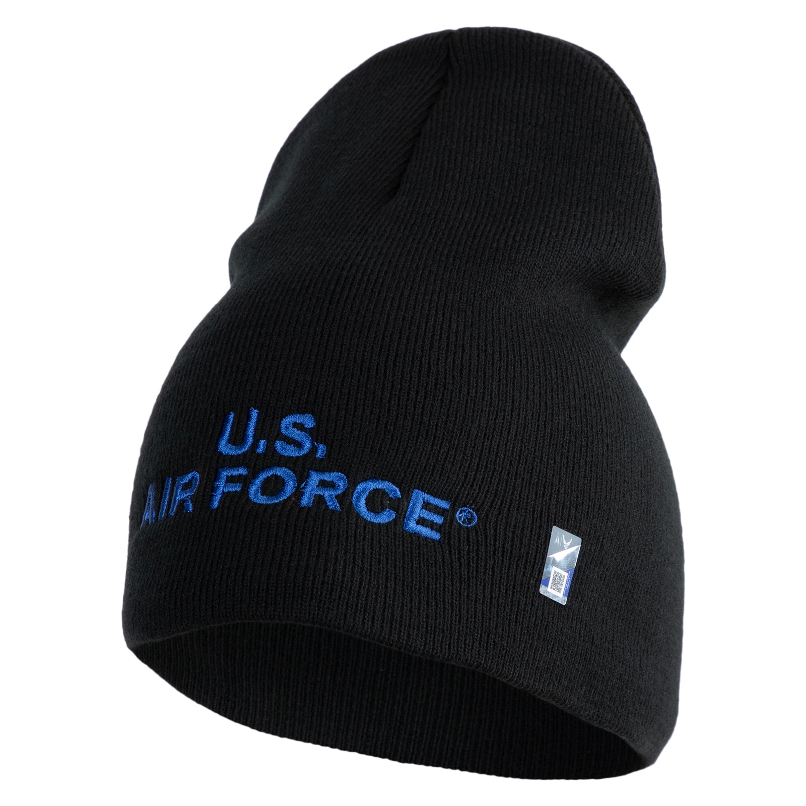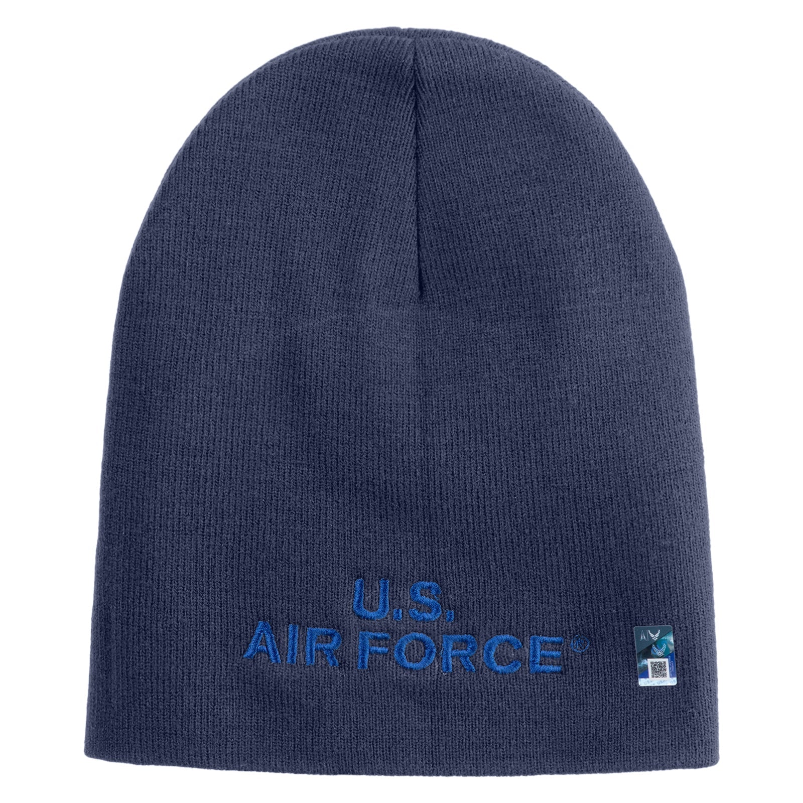 Title, US Air Force Navy Letter Symbol Embroidered 8 Inch Solid Knit Short Beanie Made in USA